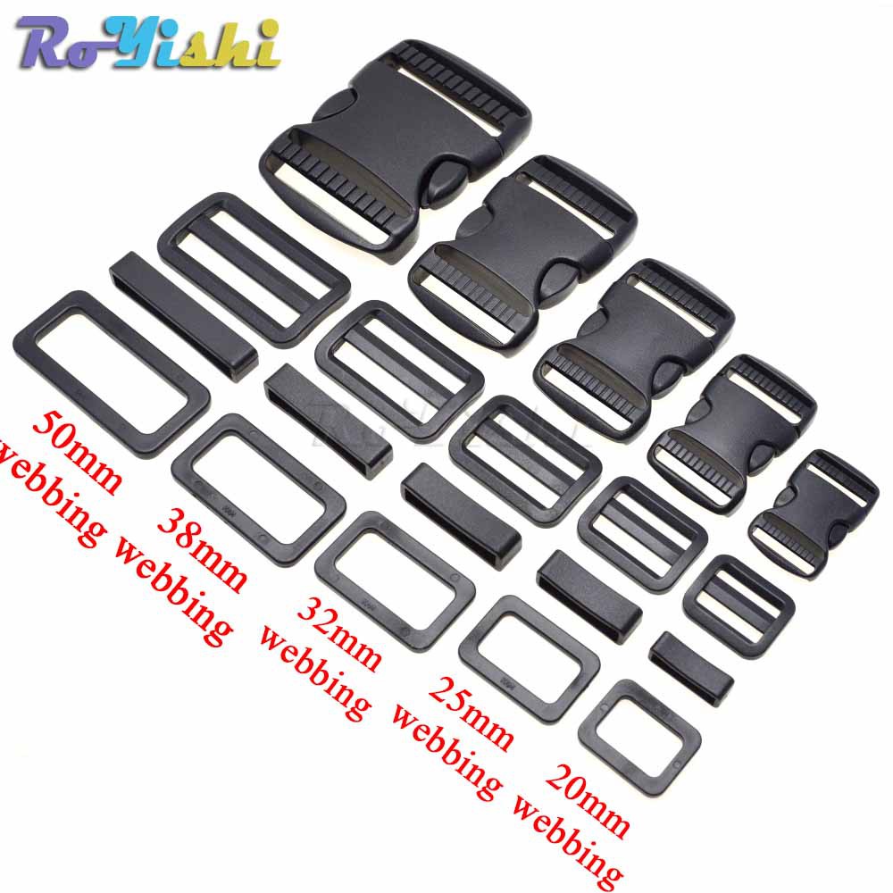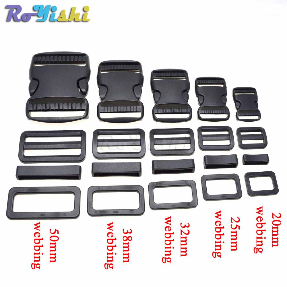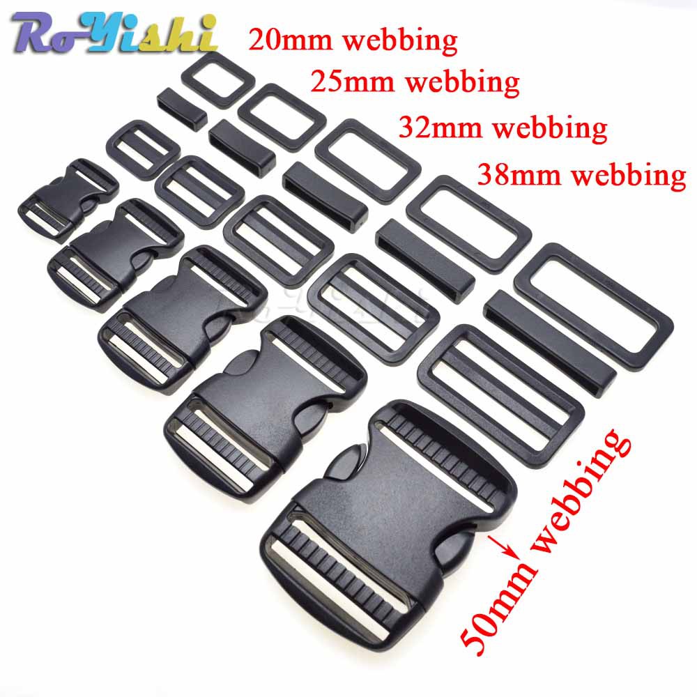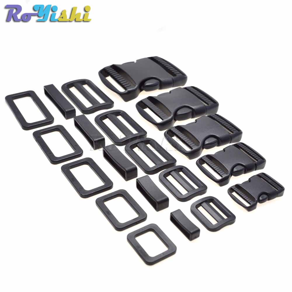1 set 20mm 25mm 30mm 38mm 50mm Plastic Slider Adjustable Rectangle Ring Belt Loop Curved Side Release Buckles For Paracord