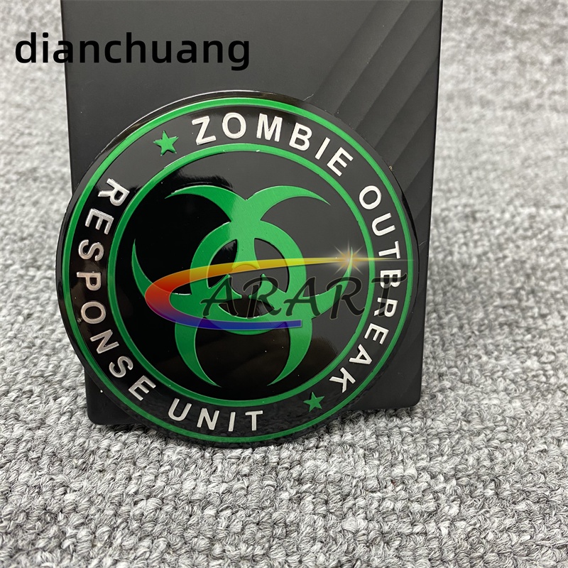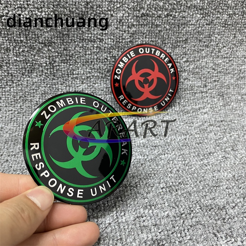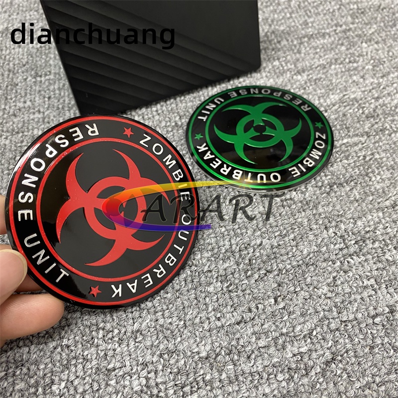 1 x Aluminum Resident Evil Zombie Outbreak Biohazard Logo Emblem Badge Sticker Decal Car Motor Bike/green