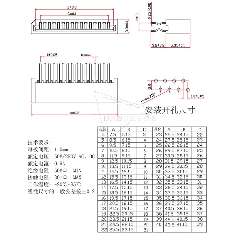 1.0mm Pitch FFC/FPC Flexible Flat Cable Socket Straight Plug Dislocation Pin Connector Vertical 4p 5 6 7 8~30P