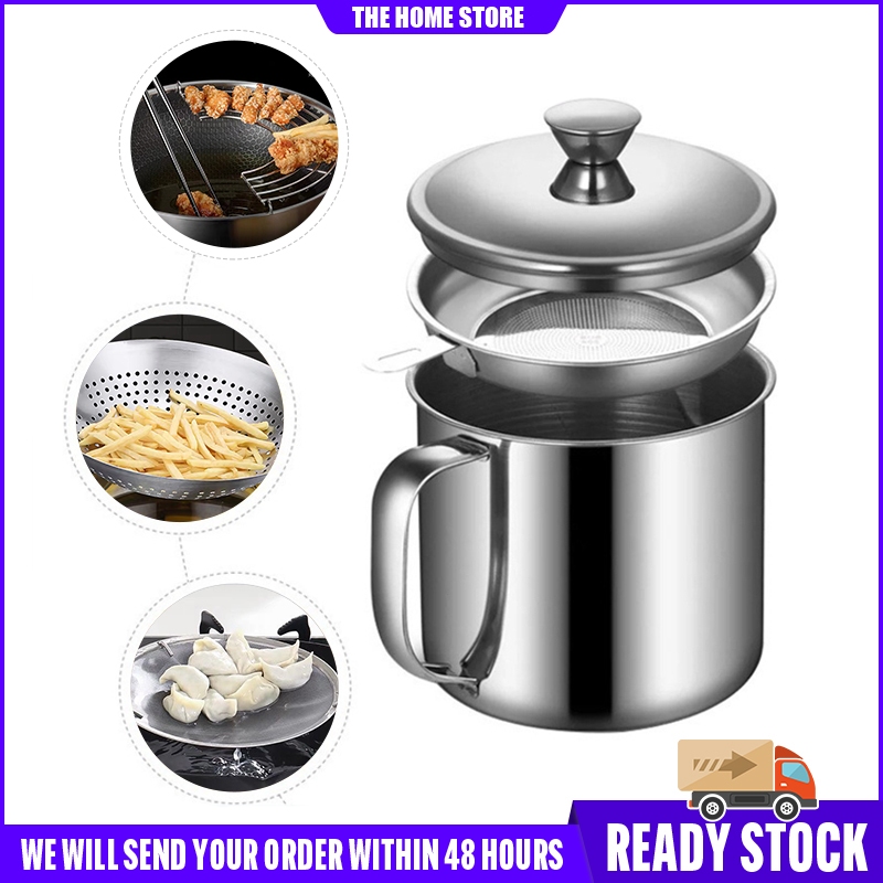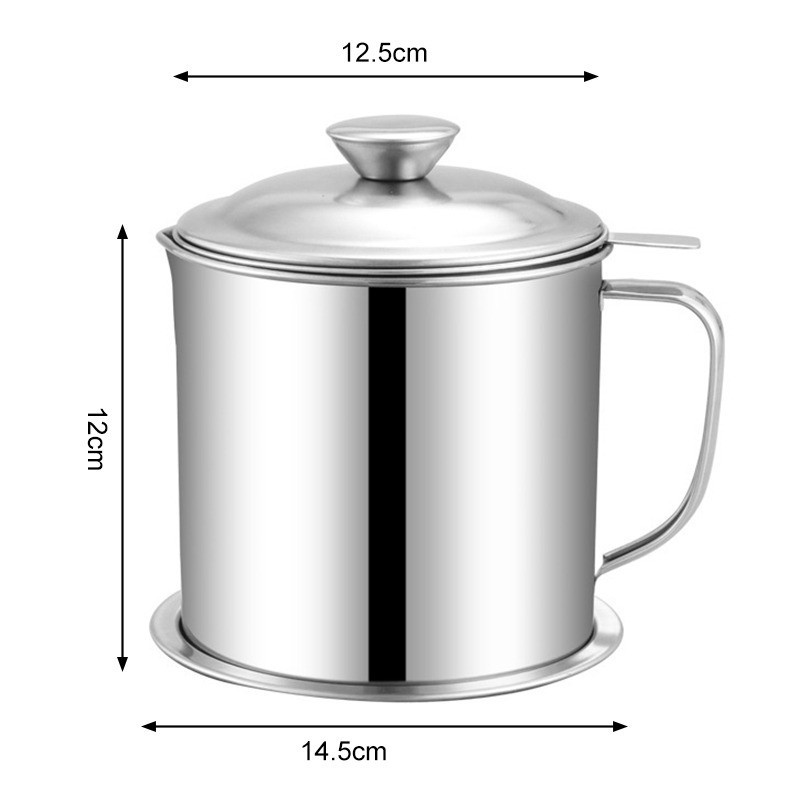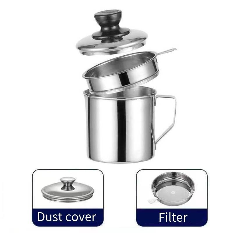 1.2/1.3L Stainless Steel Oil Strainer Pot with Lid Filter Cooking Oil Container Jug Strainer Tray