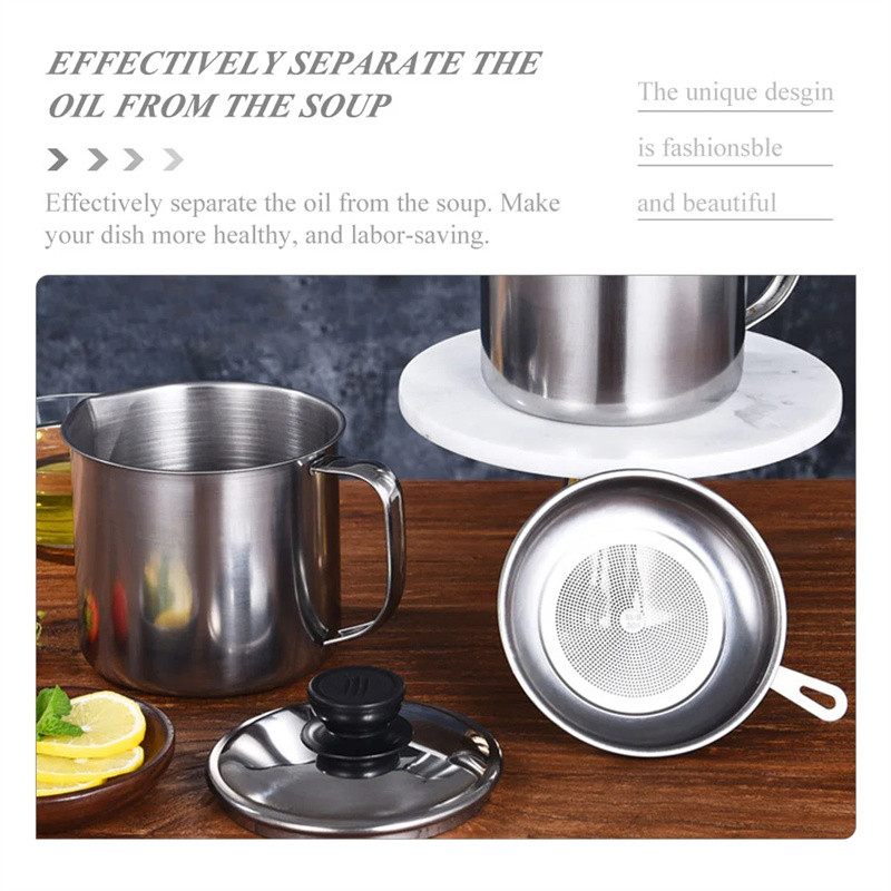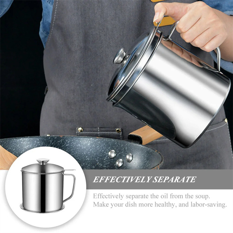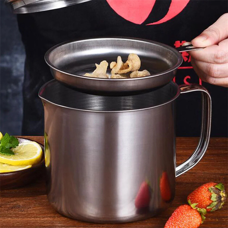 1.2L 304 Stainless Steel Oil Strainer Pot with Lid Filter Cooking Oil Container Bottle Dispenser