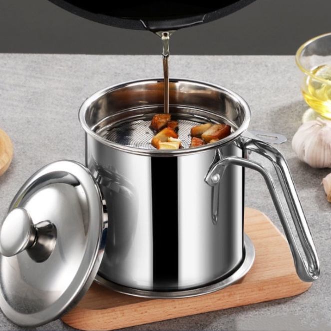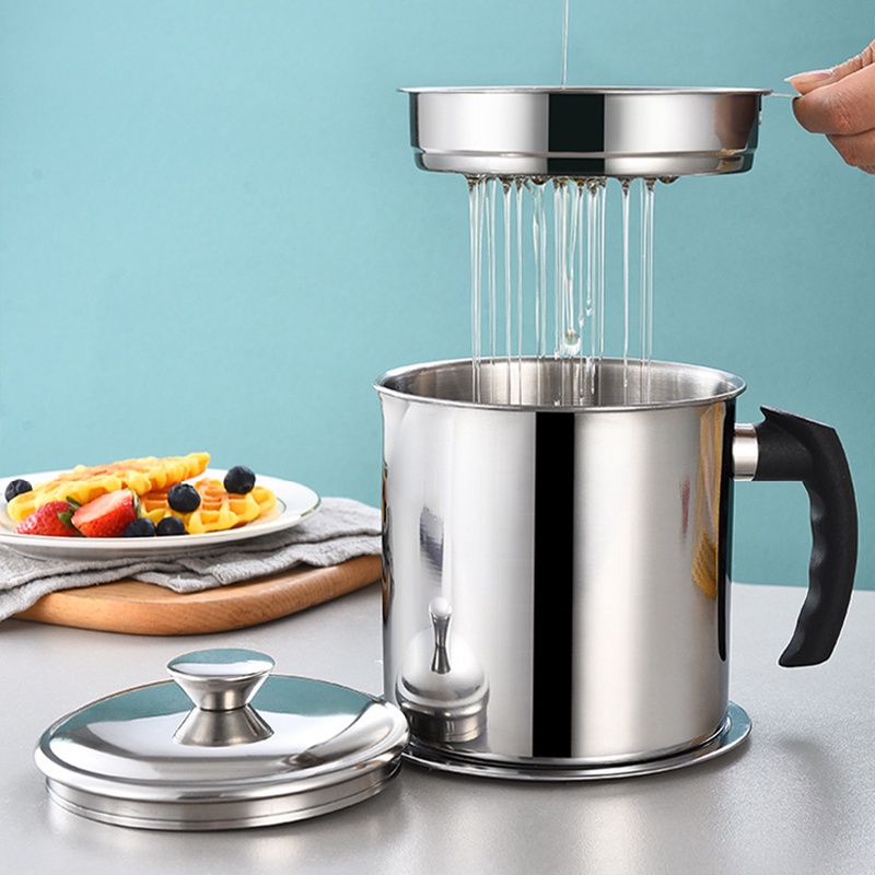 1.3L Stainless Steel Oil Container Oil Strainer Tray Kitchen Cooking Grease Filter Oil Fat