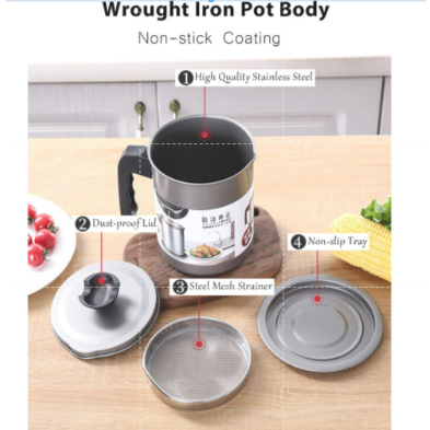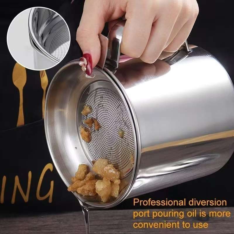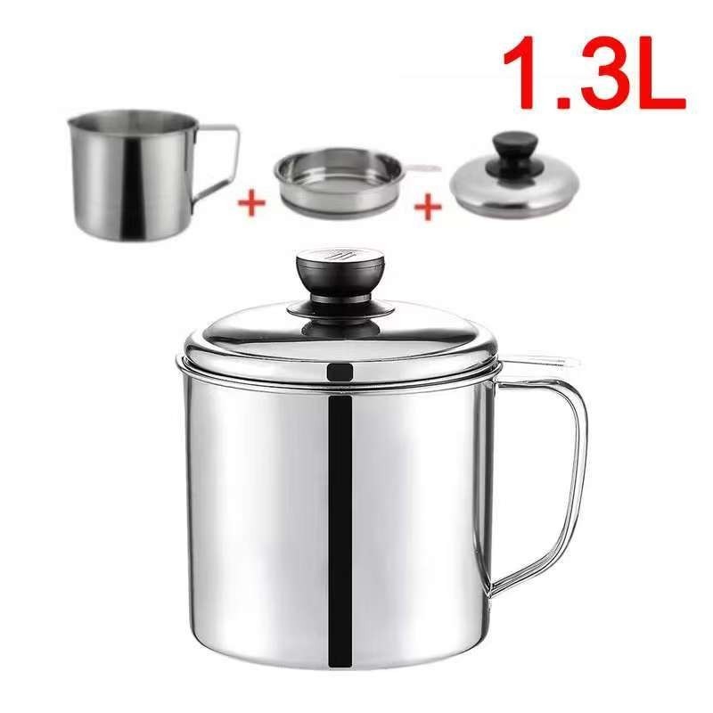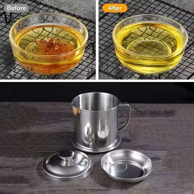 1.4L Oil and Canister Cooking Oil Storage Stainless Steel Filter Bottle Oil Strainer