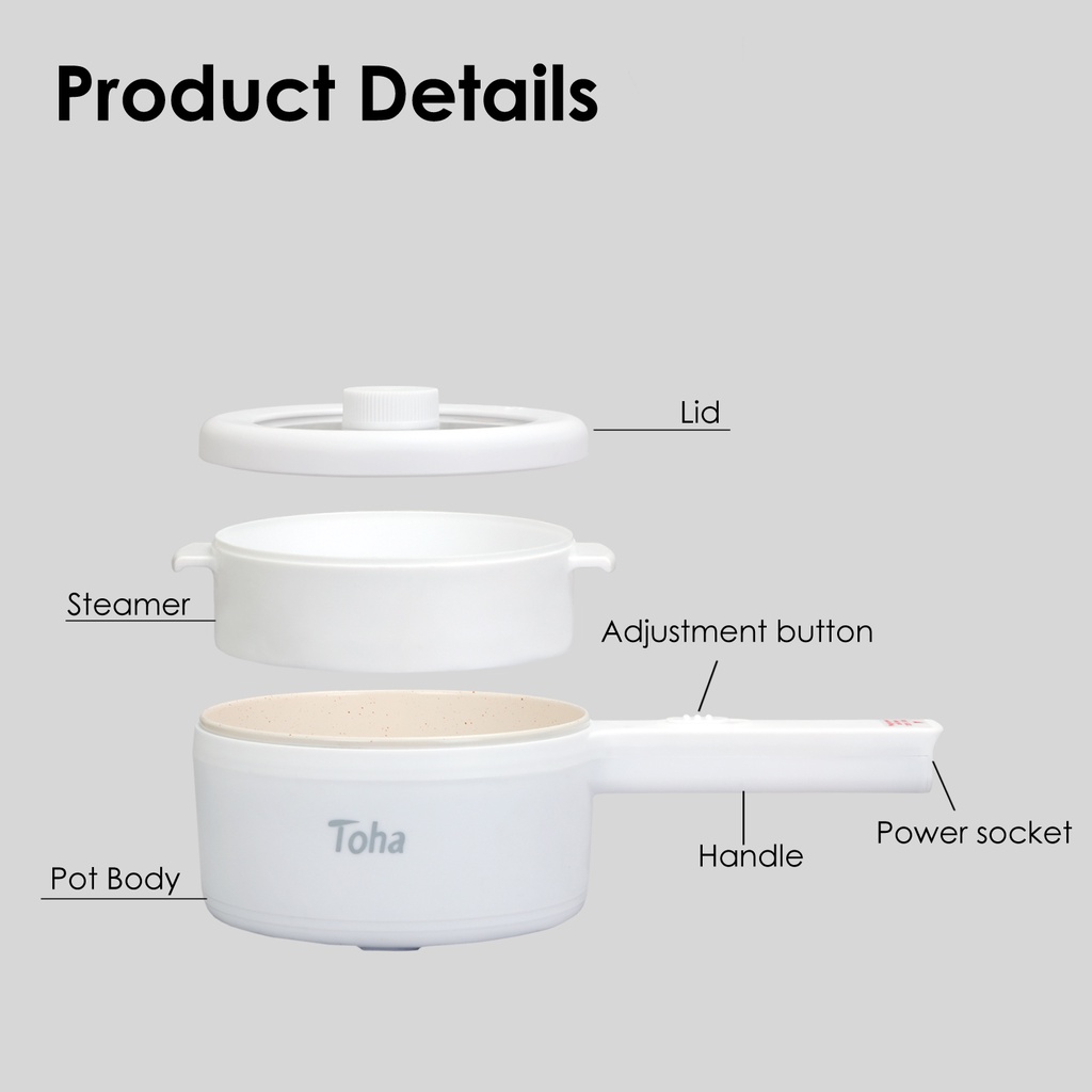 1.5L Toha Electric Pot with Steamer Multi-function cooking pot