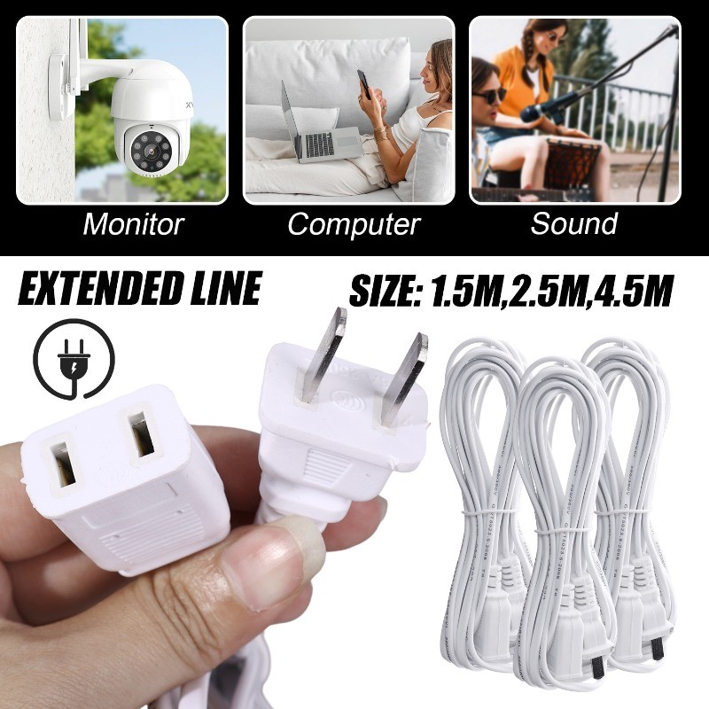 1.5M/2.5M4.5M Power Extension Cable - Durable,Safety, Universal - Power Connector Adaptor - for Home Appliances - 2Pin Power Plug Extension Cord - 250V 6A Power Cord