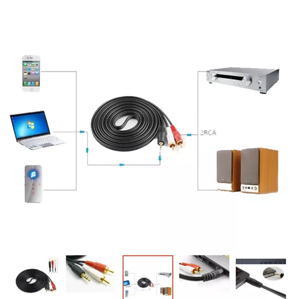 1.5M Cable 3.5mm Phono Plug Speaker Jack To 2 RCA Male Adapter Adaptor