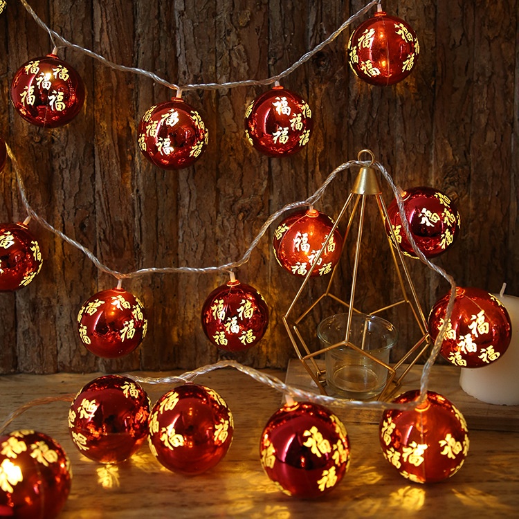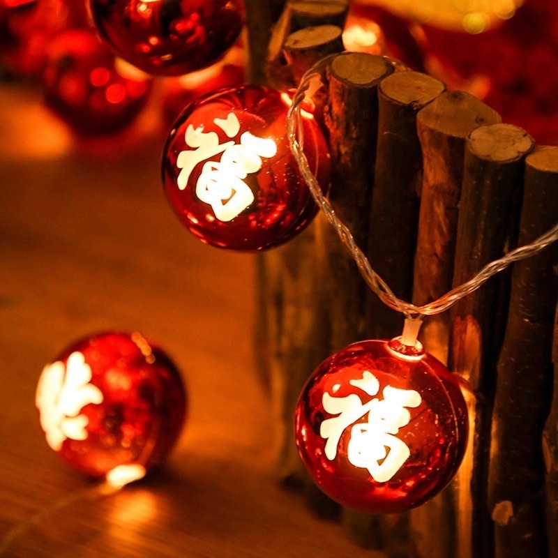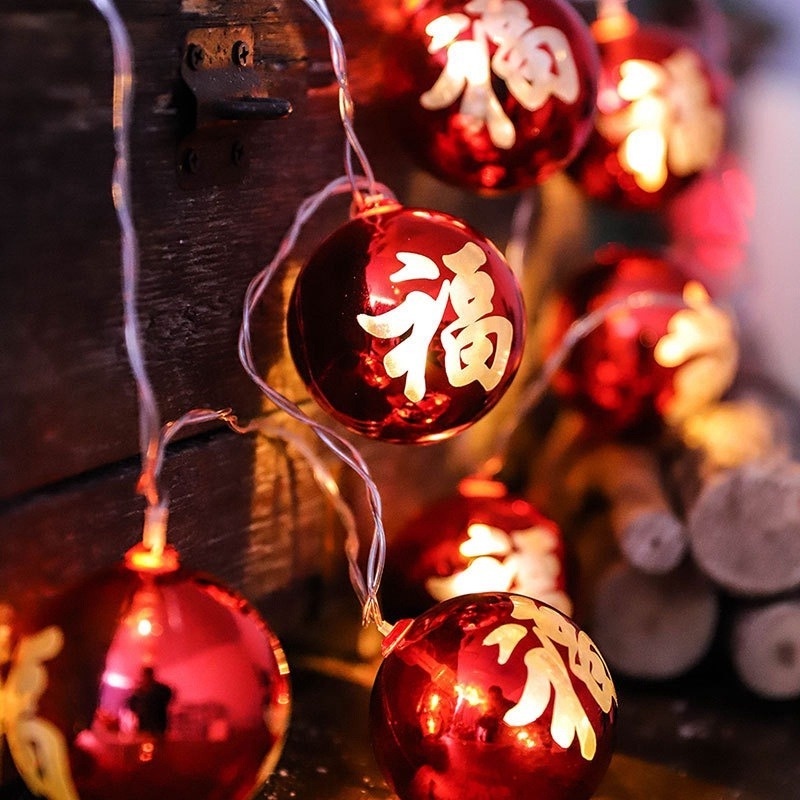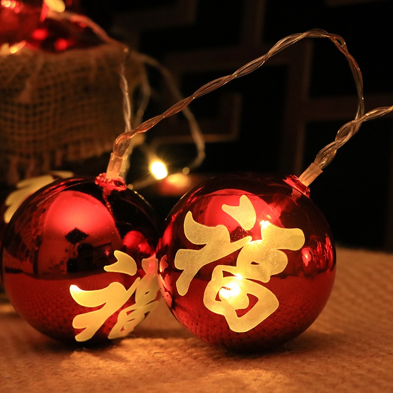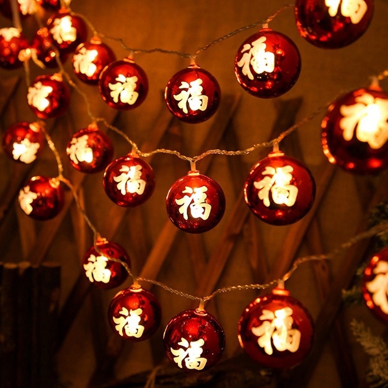 1.5M Led New Year's Blessing Decoration Lamp String Lights/Battery Powered Copper Wire Lantern Lights /Chinese Good Luck Bubble Fairy Ligths Ornament