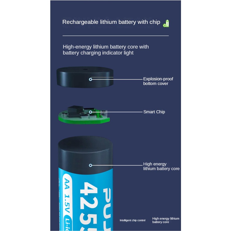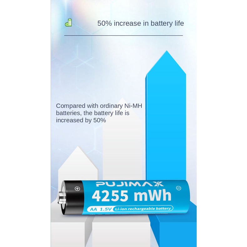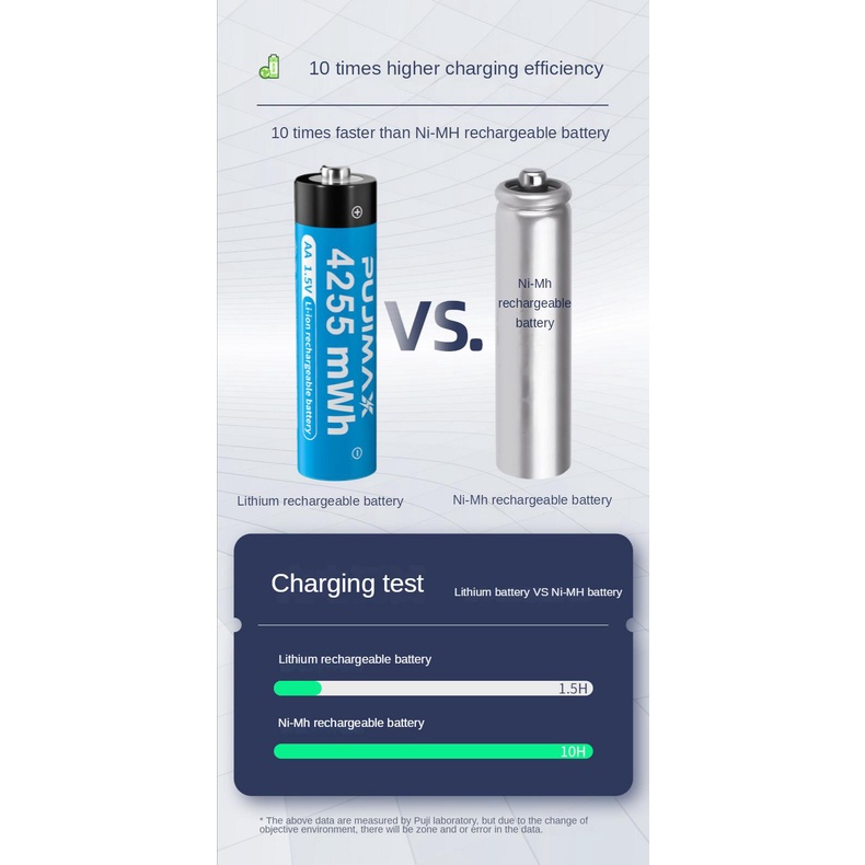 1.5V AA Lithium Battery Rechargeable Battery 4255mWh Constant Voltage Large Capacity With Charger