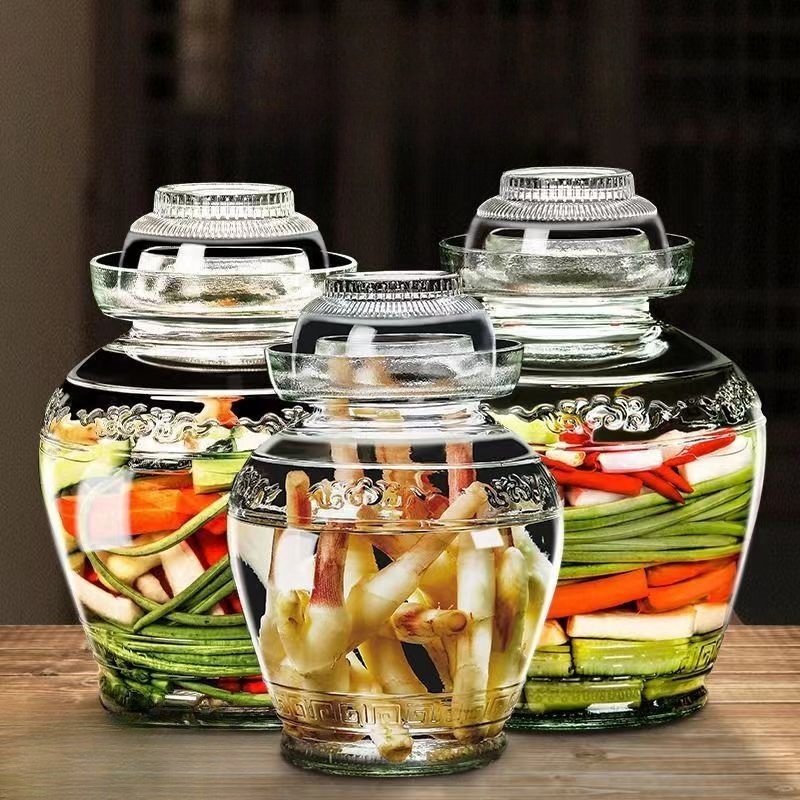 1.5kg/5kg/10kg big glass jar kimchi container airtight glass fermentation jar with lid heat resistan