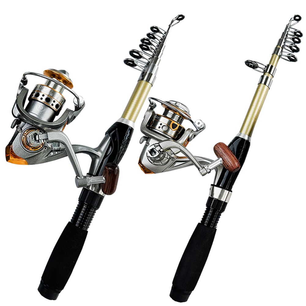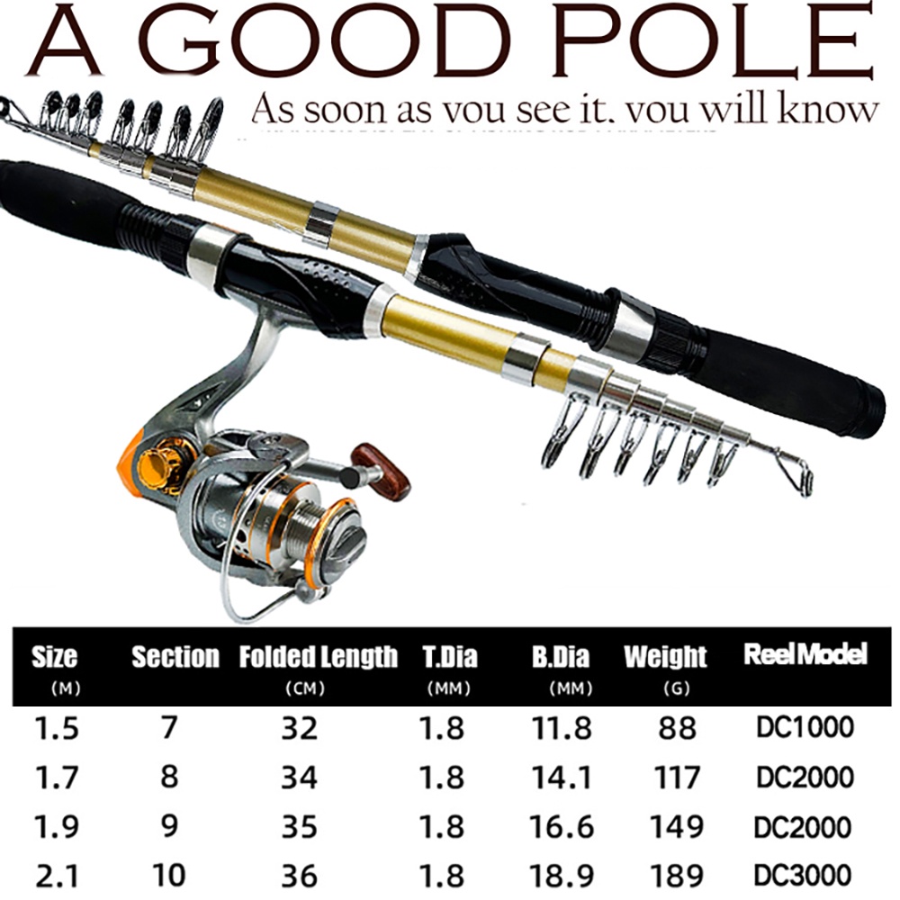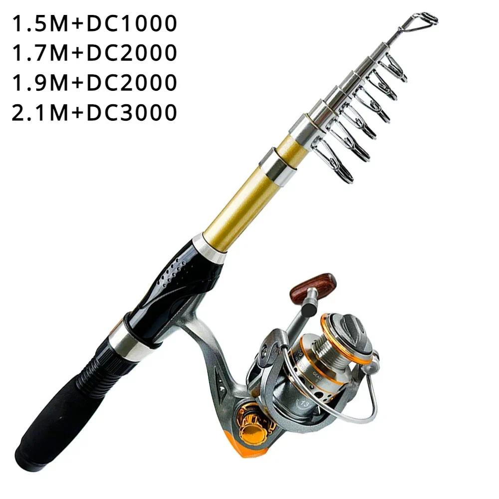 1.5m-2.1m Portable Telescopic Fishing Rod Combo with 5.2:1 Reel Set Travel Sea Rods Fast Carp Pole Top Quality SPININNG Tackle
