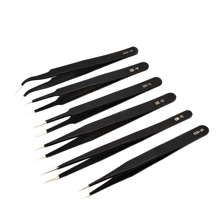 1.5mm Industrial Tweezers Anti-Static Stainless Steel Tweezer Set Mobile Phone Repair Tools Precision Tweezer ESD10 ESD11 ESD12 ESD13 ESD14 ESD15