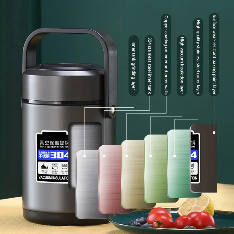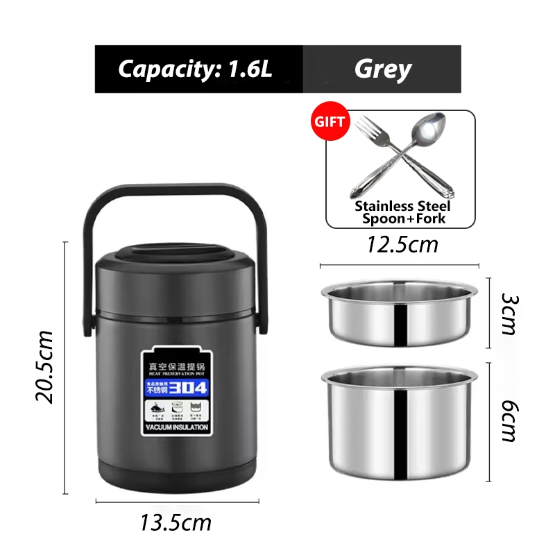 1.6L Stainless Steel Vacuum Thermal Lunch Box Portable Food Warmer Soup Cup Thermos Containers