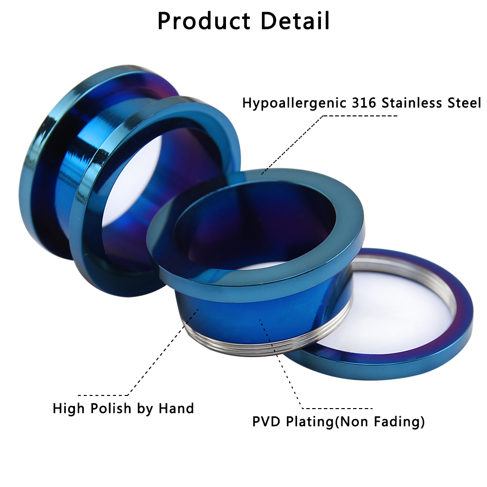 1.6mm-30mm Ear Expander Blue Ear Stretchers Stainless Steel Ear Tunnel Plug Ear Gauge Body Piercing Jewelry