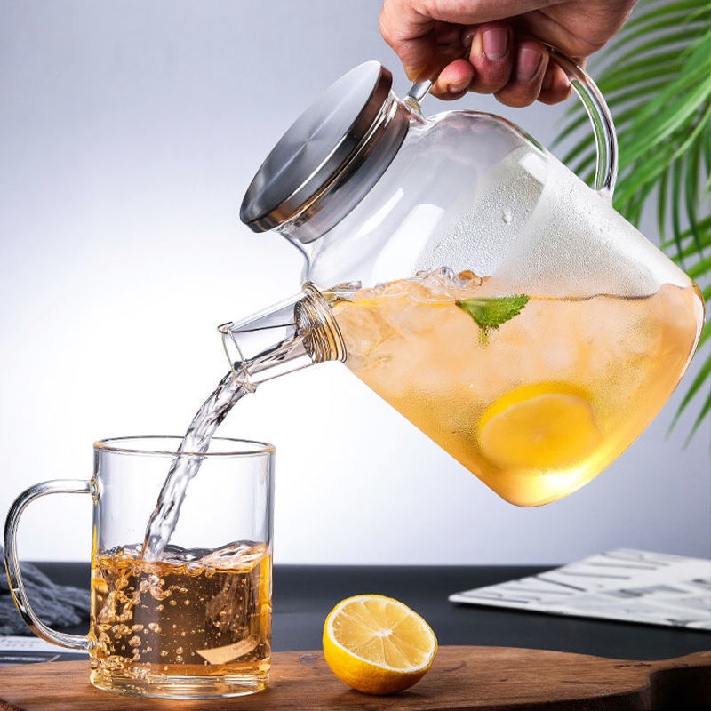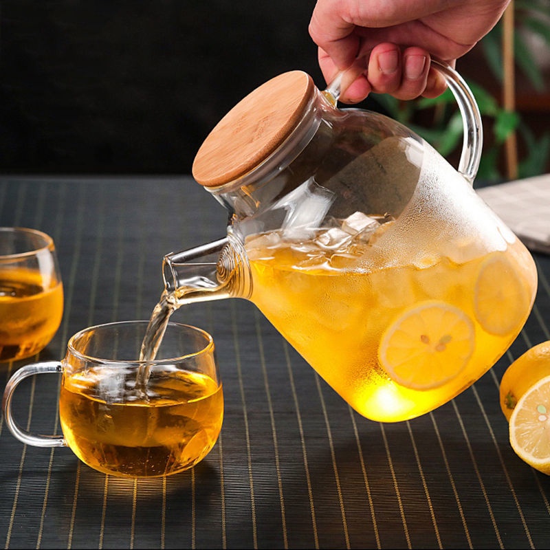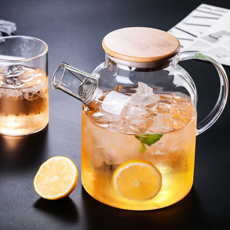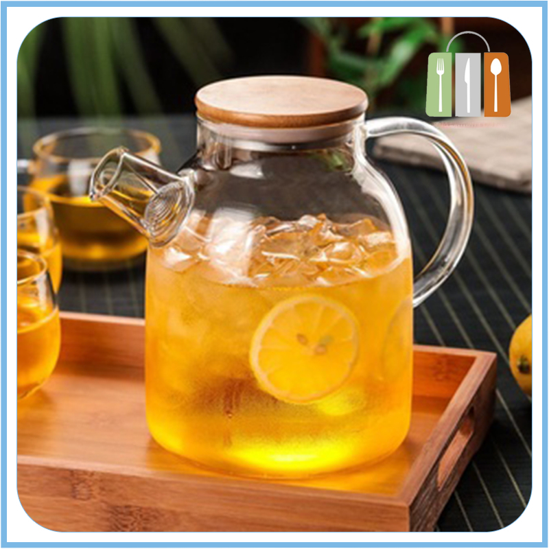 1.8L Borosilicate Glass Pitcher with bamboo lid Portable Handle water glass pitcher Carafes