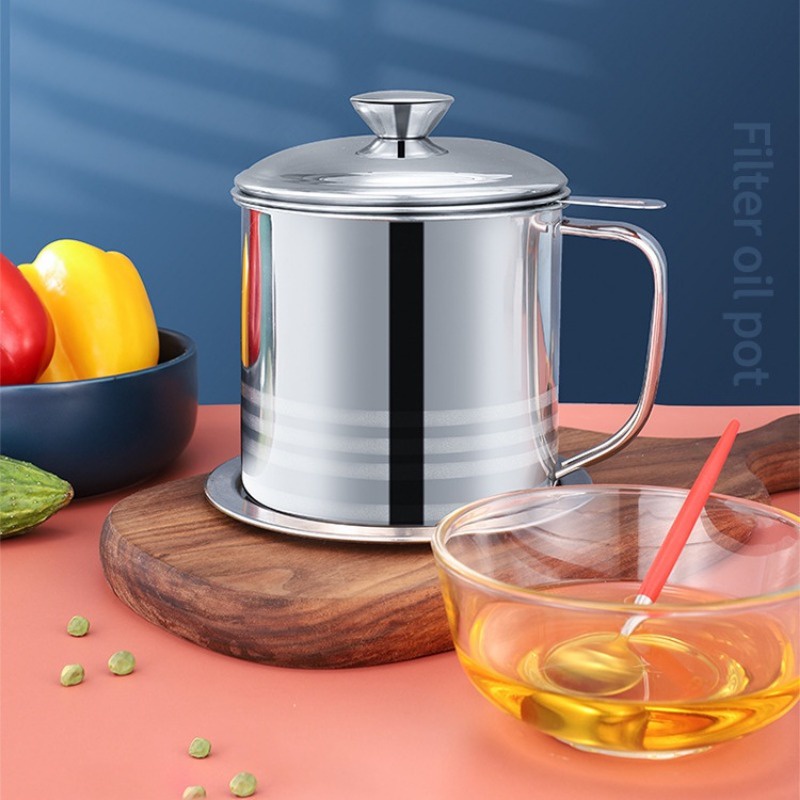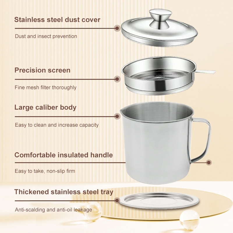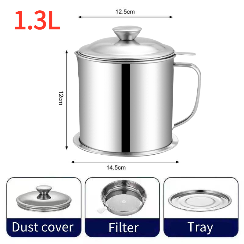 1.8L Oil Strainer Pot with Lid 304 Stainless Steel 1.3L Filter Cooking Oil Container Bottle Dispense