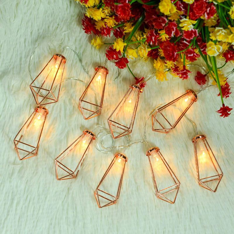 10/20/30LED Gold Geometric Fairy Lights Boho Metal Cage Bedroom String Lights