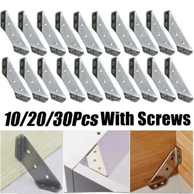 10/20/30Sets Furniture Right Angle Support Bracket/Angle Corner Shelf Supporting Fastener with Screw