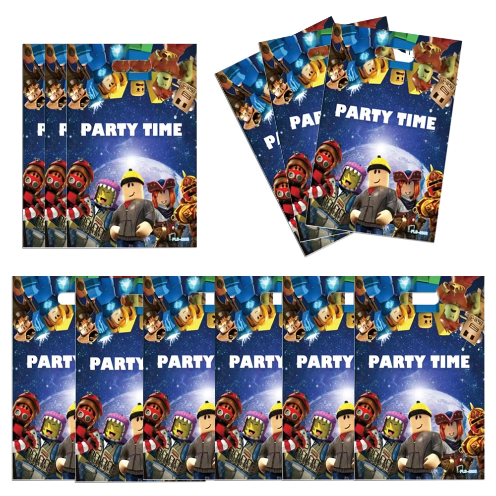10/20/30pcs Roblox Gift Bags Birthday Decor Disposable Robot Plastic Candy Gift Bag Roblox Theme Party Bag Kids Birthday Festival Party Supplies