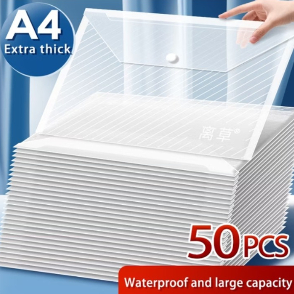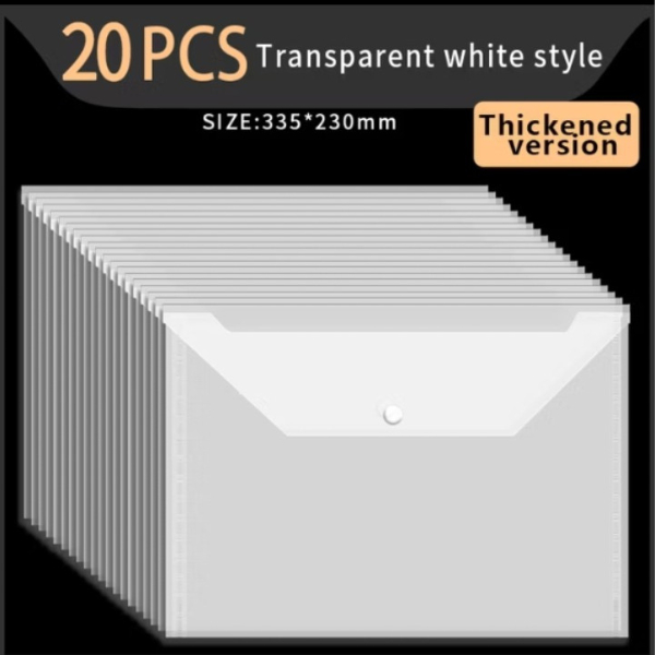10/20/50 PCS Transparent Plastic Envelope Folder | A4 Document File Organizer with Button Closure