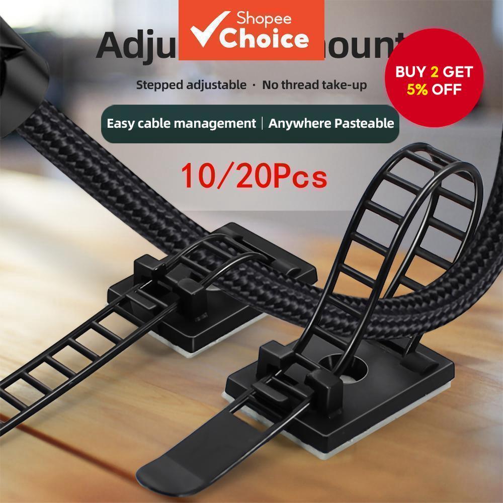 10/20 Pcs Adjustable Self-Adhesive Nylon Black Cable Ties, Cable Clamps Cable Clips Cord Clamp Nylon Cable Straps Cable Organizer Kits for Wire Management
