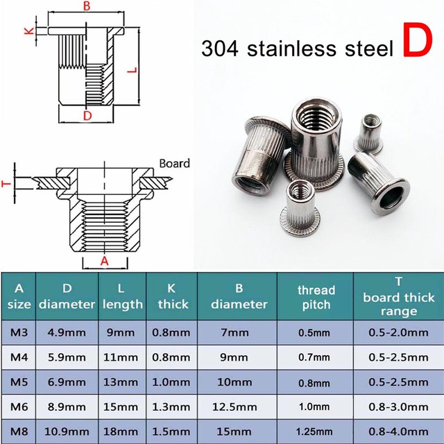 10/20pcs M3 M4 M5 M6 M8 304 Stainless Steel Carbon Steel Aluminum Flat Head Blind Rivet Nut Insert Rivnut Nutsert for