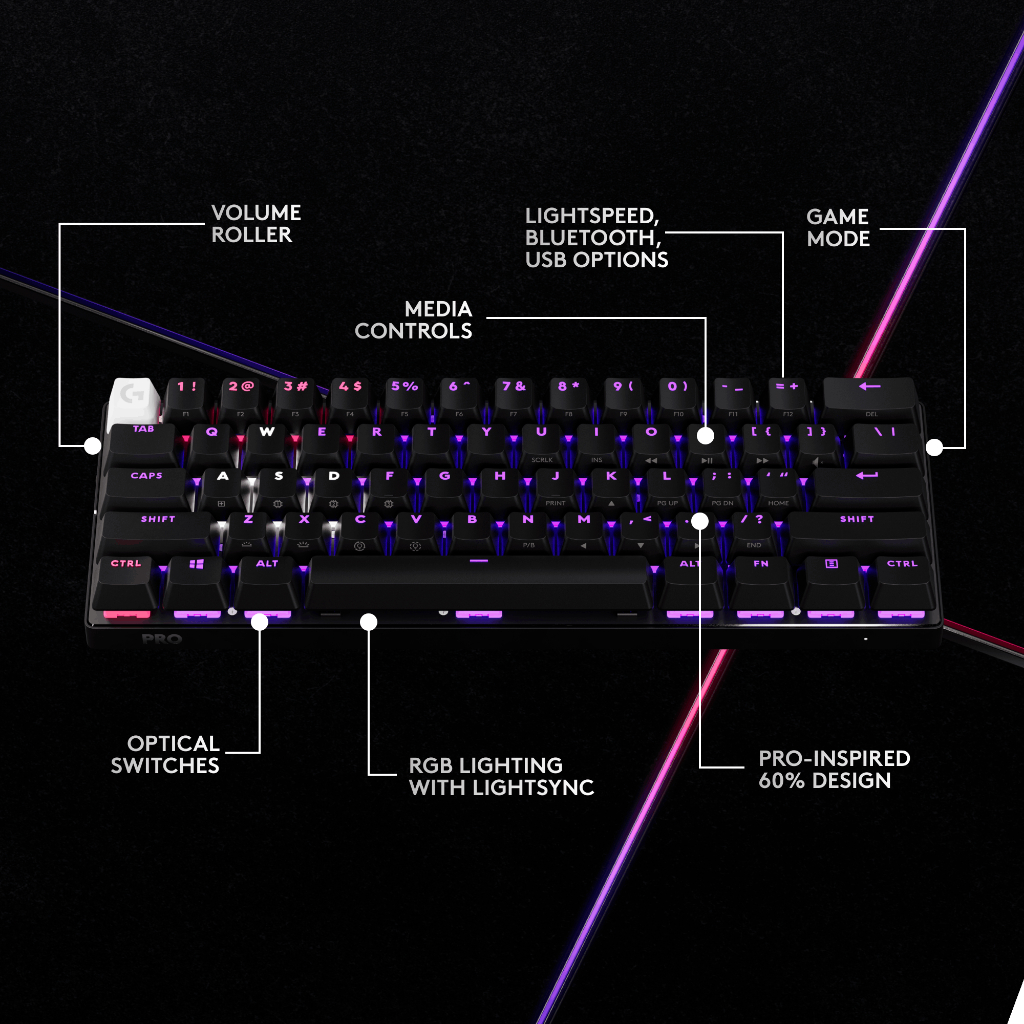 Logitech G Pro X 60 GX Tactile Switch Lightsync RGB Keycontrol Lightspeed Wireless Gaming Keyboard