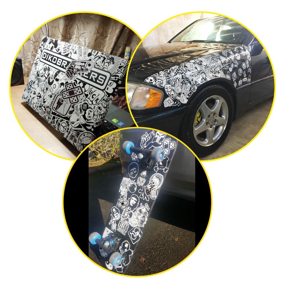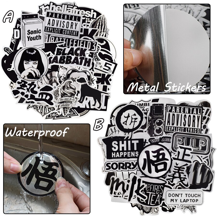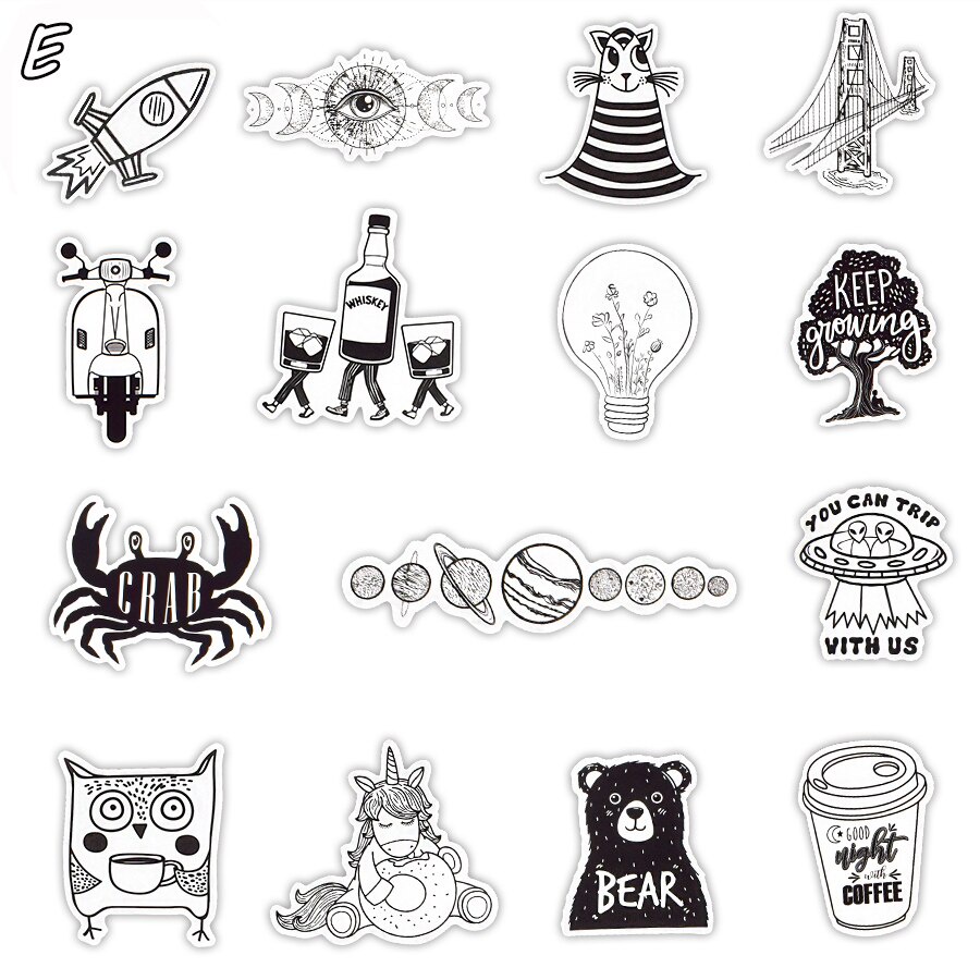 10/50 PCS Black and White JDM Sticker for Kids Adult Graffiti Cool Waterproof Stickers for Laptop Car Skateboard Helmet Suitcase