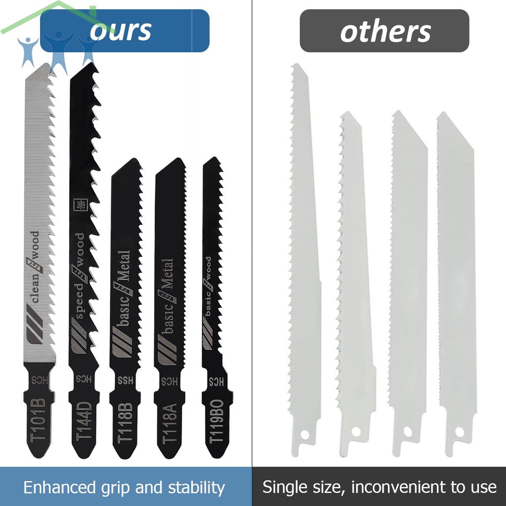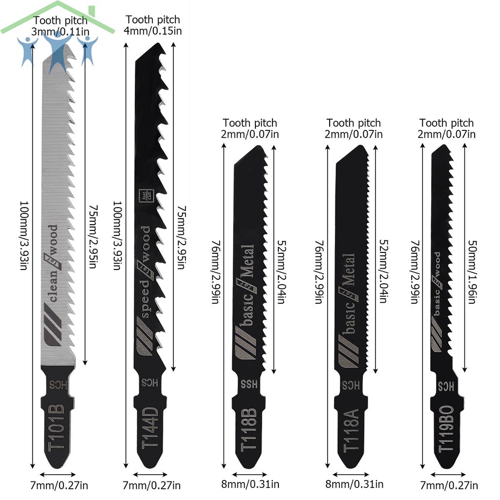 10/50pcs Carbon Steel Assorted Jig Saw Blades with T-shank Wood Thin Metal Fast Cut Down Saw Blade Set Jigsaw Blade Set for Wood Reciprocating Curve saw Blade