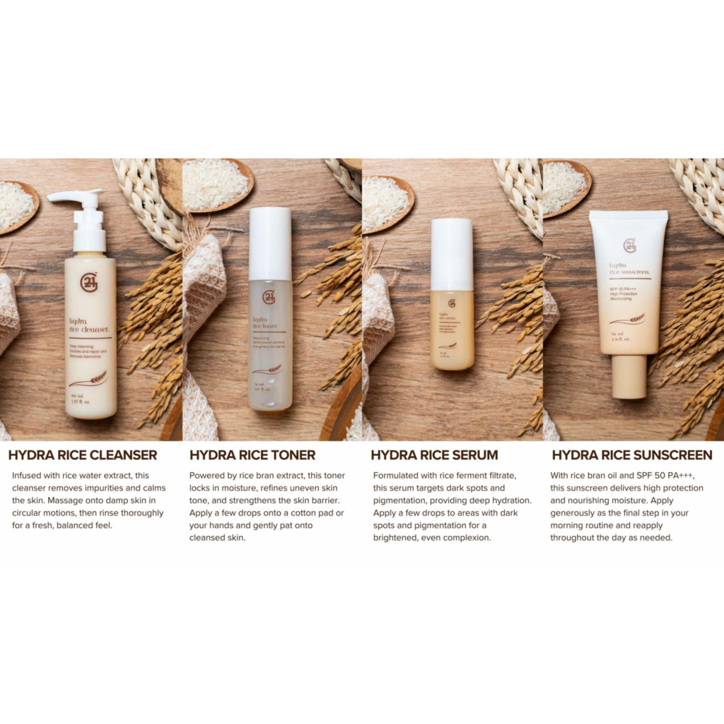 G21 Hydra Rice Set | Cleanser Toner Serum Sunscreen | Mild Facial Set