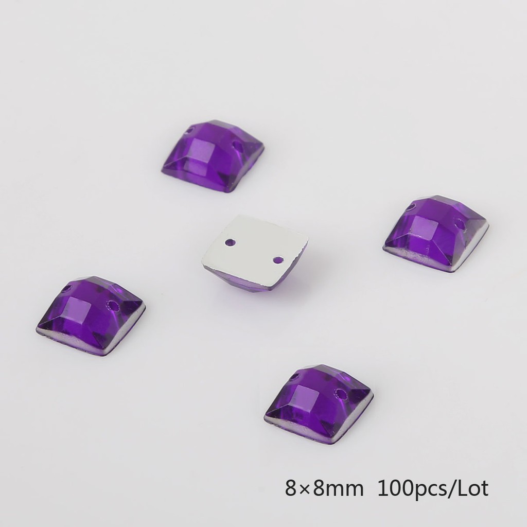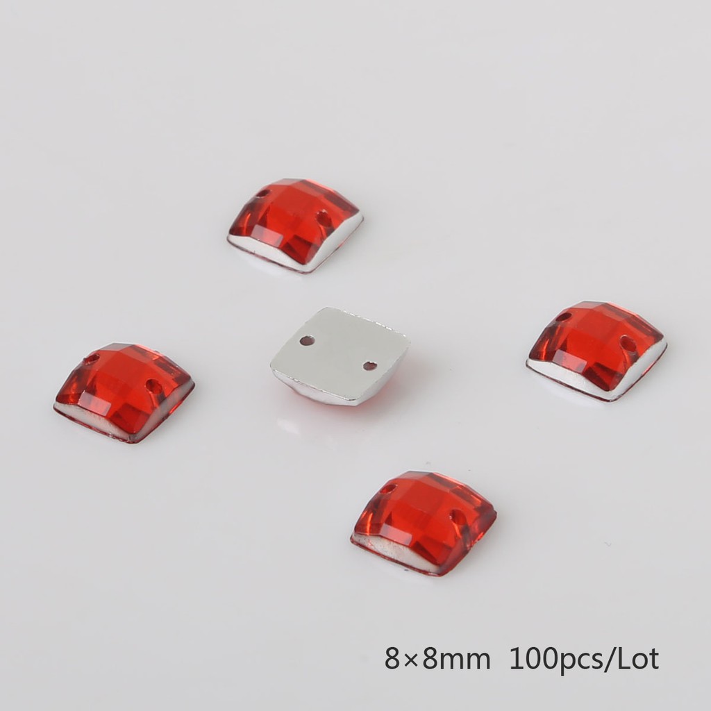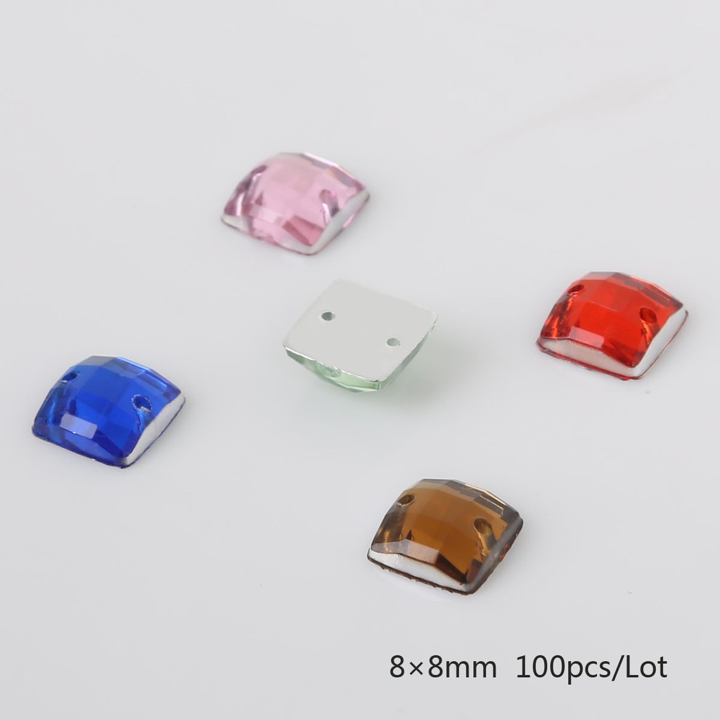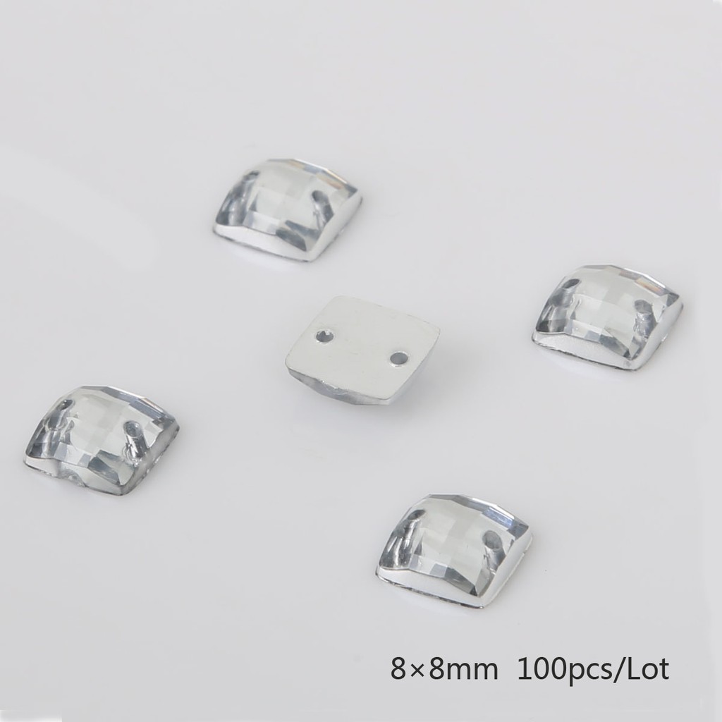 10 Colors 100PCS Sew-on Acrylic Rhinestones 8X8mm Acrylic Crystal Flat Back Square Beads Stones For DIY Wedding Decoration Craft
