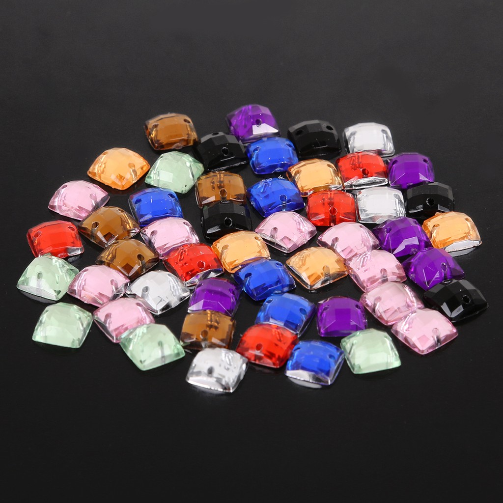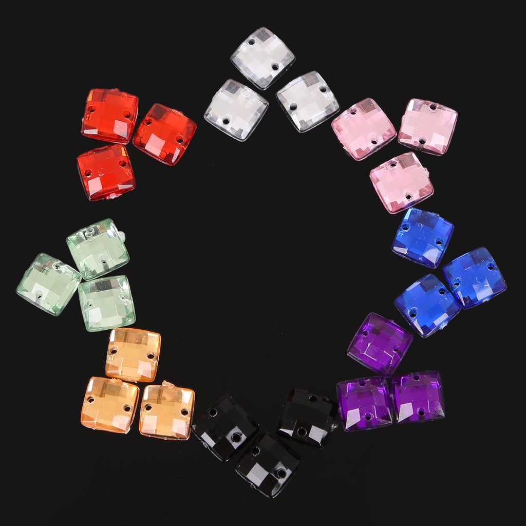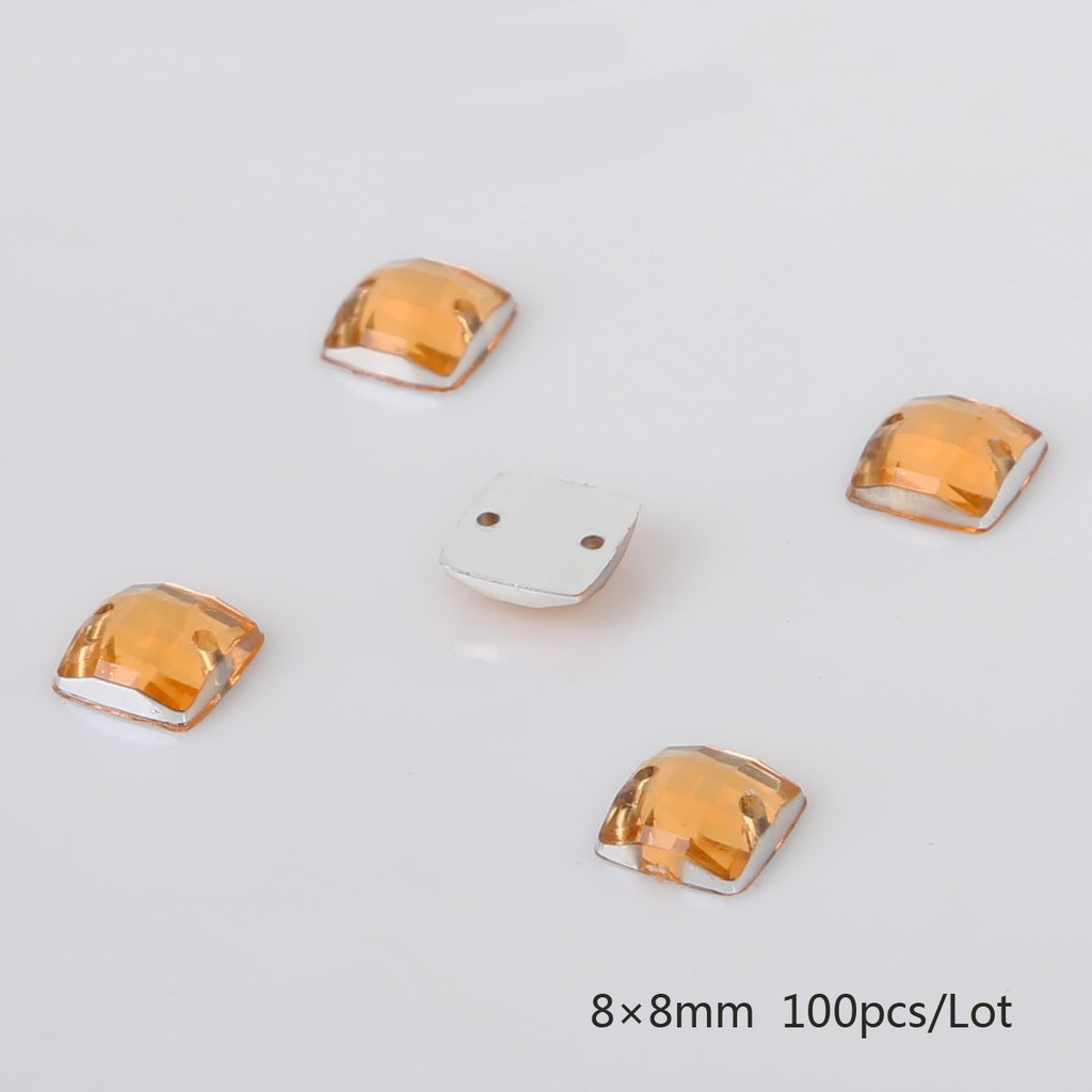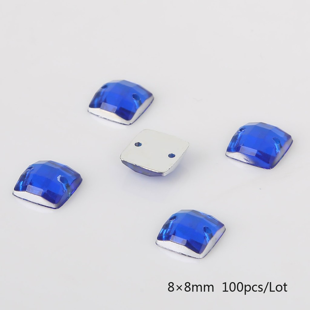 10 Colors 100PCS Sew-on Acrylic Rhinestones 8X8mm Acrylic Crystal Flat Back Square Beads Stones For DIY Wedding Decoration Craft