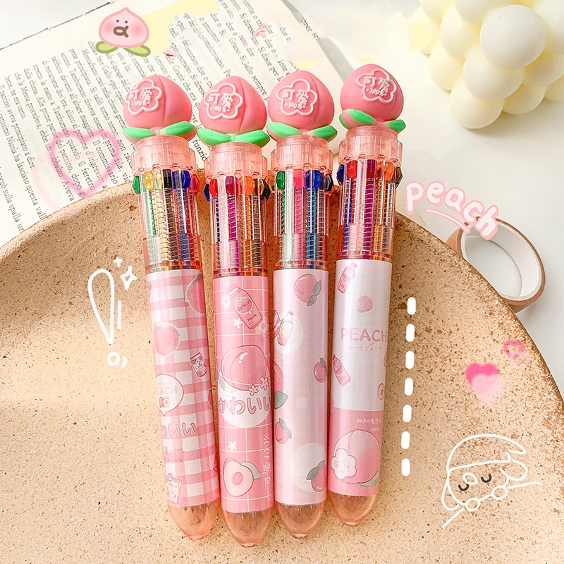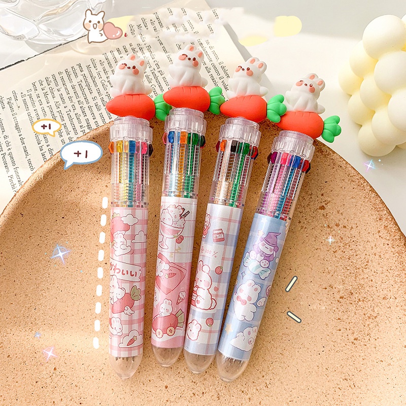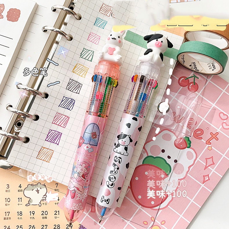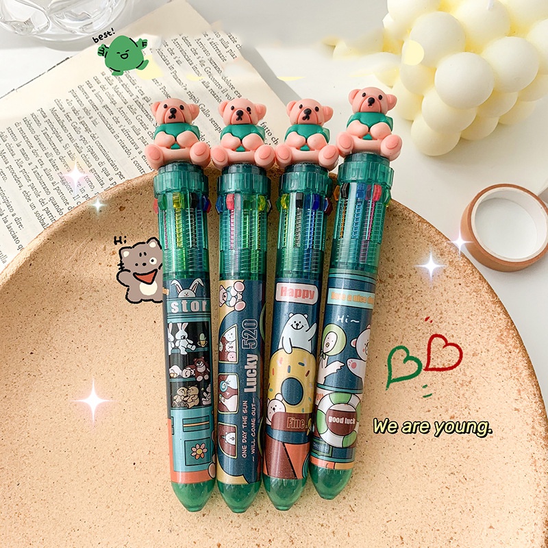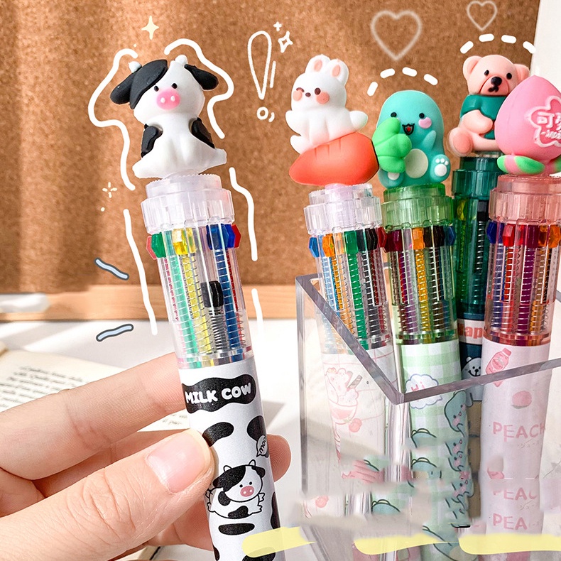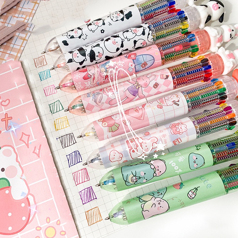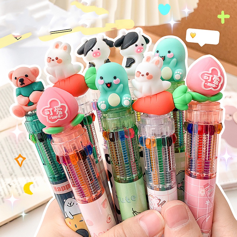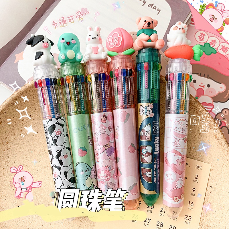 10 Colors Ballpoint Pen Cute Cartoon Animal Push Type Office Stationary Student Pen