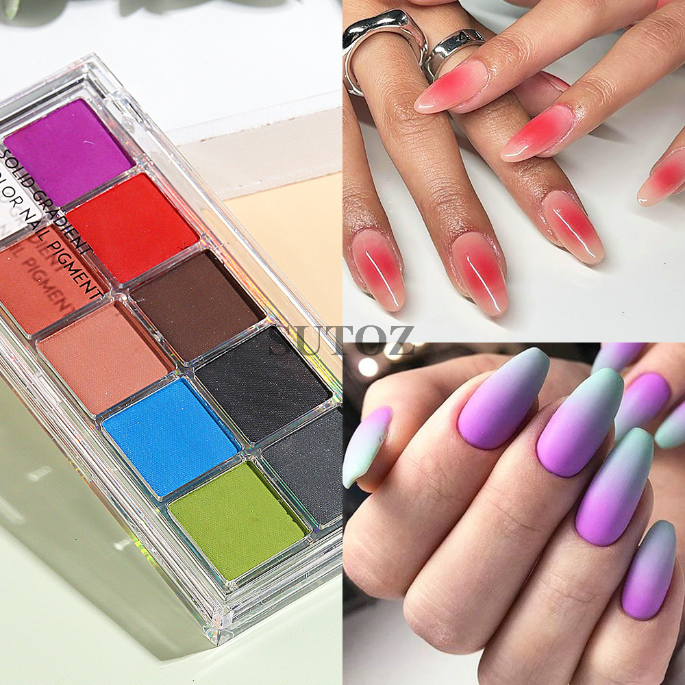 10 Colors Gradient Nail Powders Set Natural Neon Solid Pigment Dipping Dust Ombre Design Rubbing Powder DIY Manicure 10SRF-01