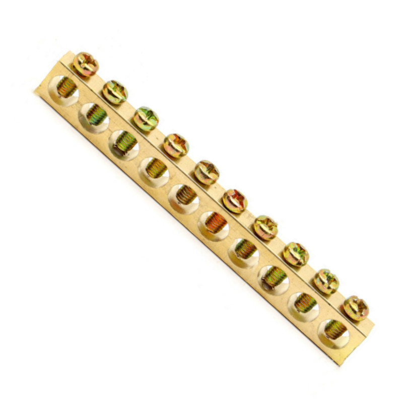 10 Hole Copper Terminal Ground Bar with Hole, Zero Grounding Row Screw Bar Terminal