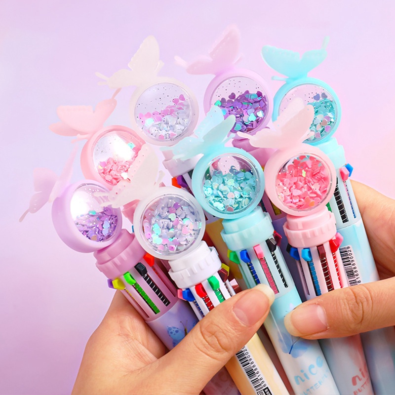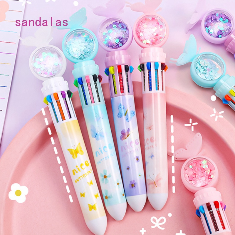 10 In 1 Cartoon Pen 10 Color Retractable Ten Colors Kids Cute Ball Student Multi Color
