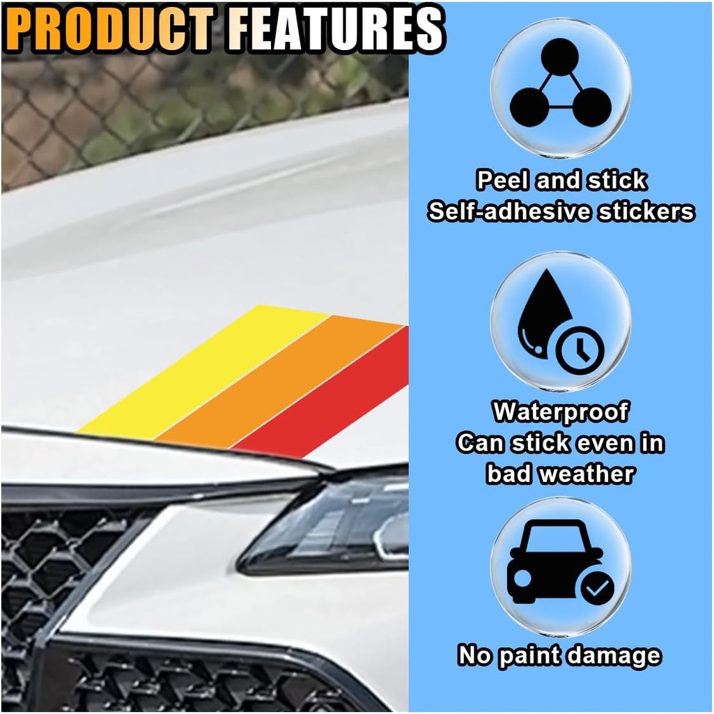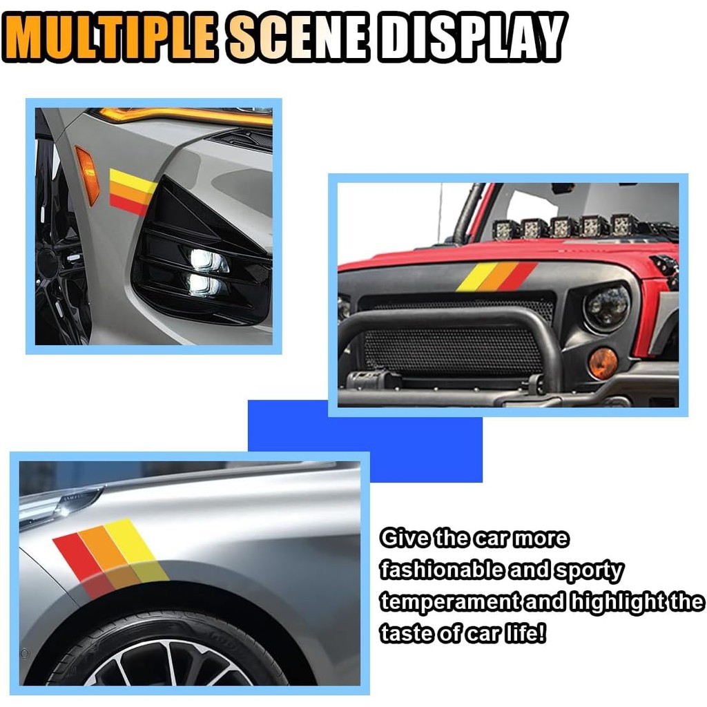 10-Inch Classic Retro Tri-Color Stripe Sticker Decal - Red Car Exterior/Interior Decoration for Toyota Tacoma, 4Runner, Tundra (Grille, Fender, Hood, Side Skirt, Bumper, Dashboard)