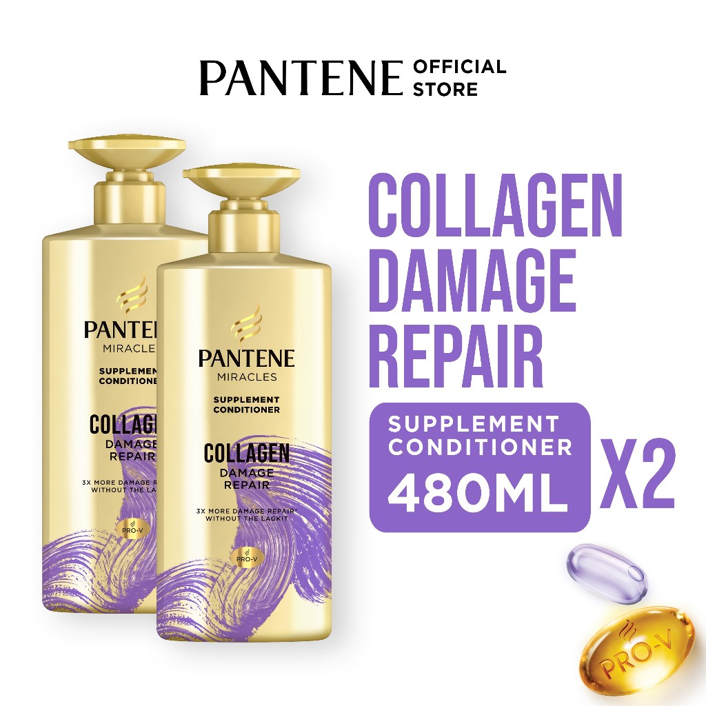 Pantene Miracles Supplement Conditioner Collagen Damage Repair Hair Care 480ml Duo