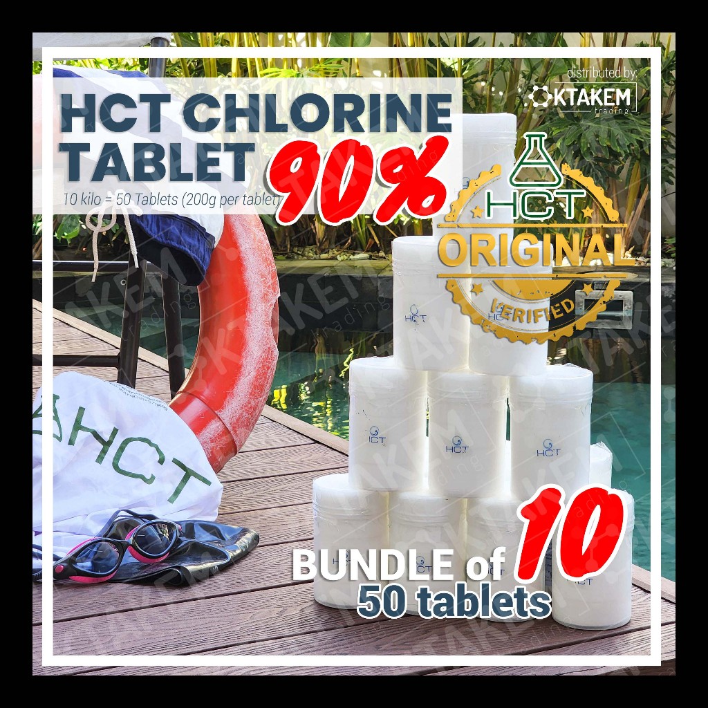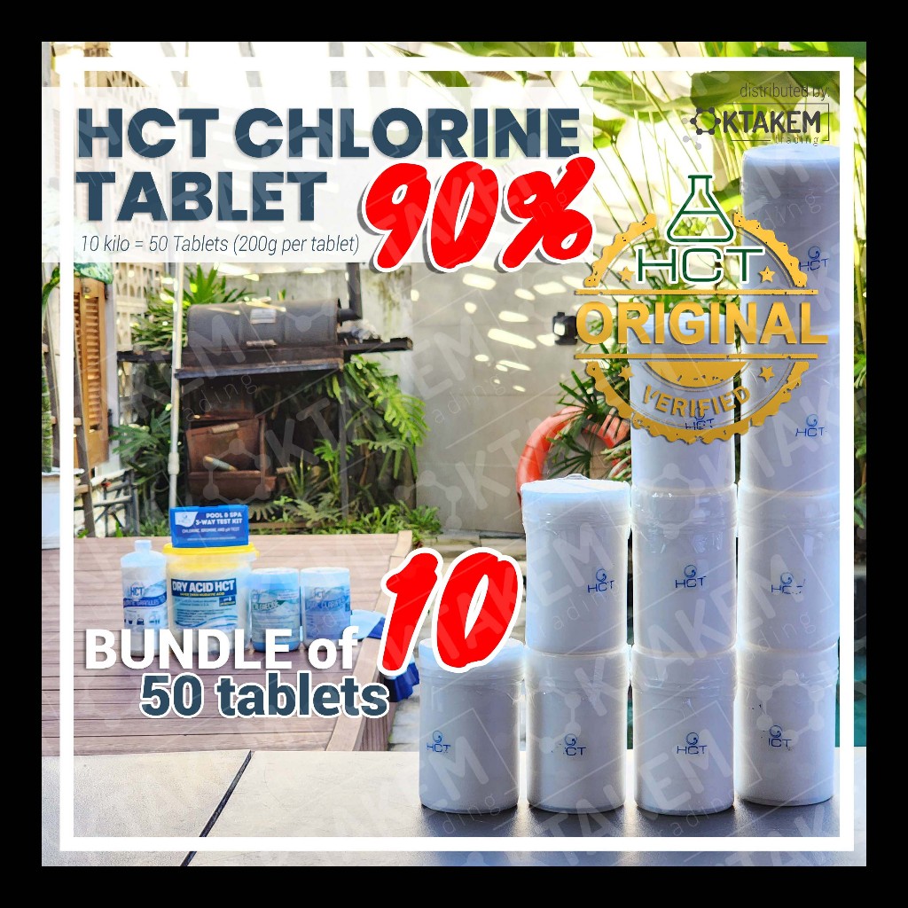 10 PACK - HCT Chlorine 90% Tablets for Pools - Slow Dissolving TICA / TCCA - 10 KILO - OKTAKEM