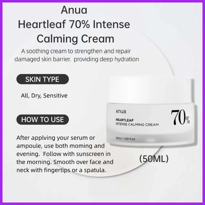 ◶ ◆ Anua Heartleaf 70% Intense Calming Cream Soothing Repair Brightening Body Moisturizer 50ml