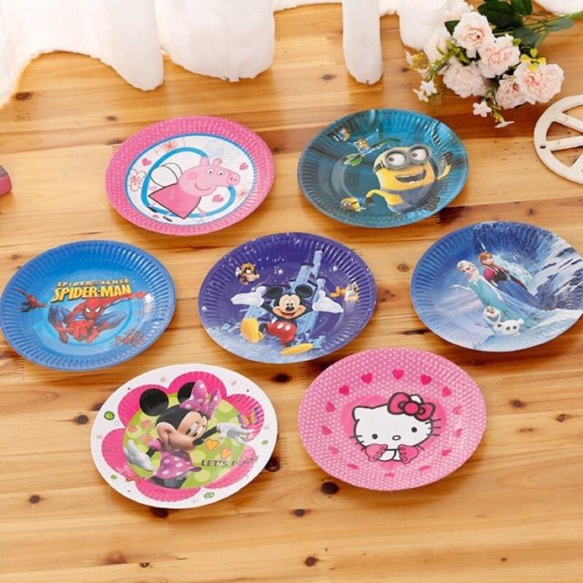 10 Pcs 9 inches Cartoon theme Children's birthday plate disposable cartoon cutlery paper plate