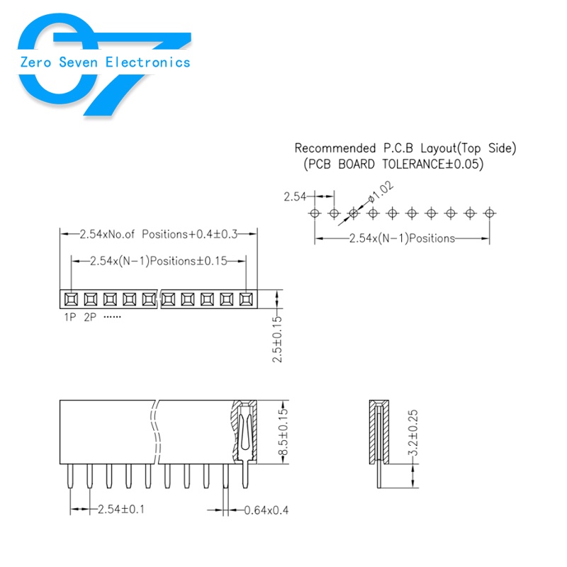 10 Pcs Single Row Female Pitch 2.54mm Socket Pin 1 * 2p/3/4/5/6/7/8/9/10P-1x40p Height 8.5MM