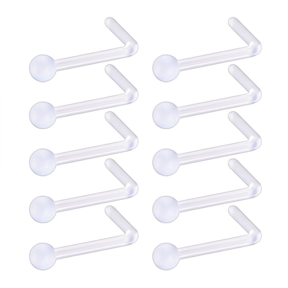 10 Pcs/lot Bioflex Nose Studs 2MM Clear Skin Color Nose Retainer Khaki Nostril Piercing Set Acrylic Nose Piercing Set