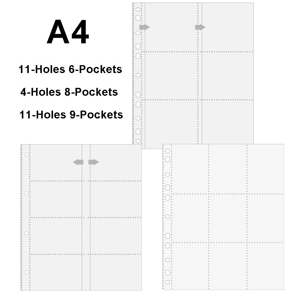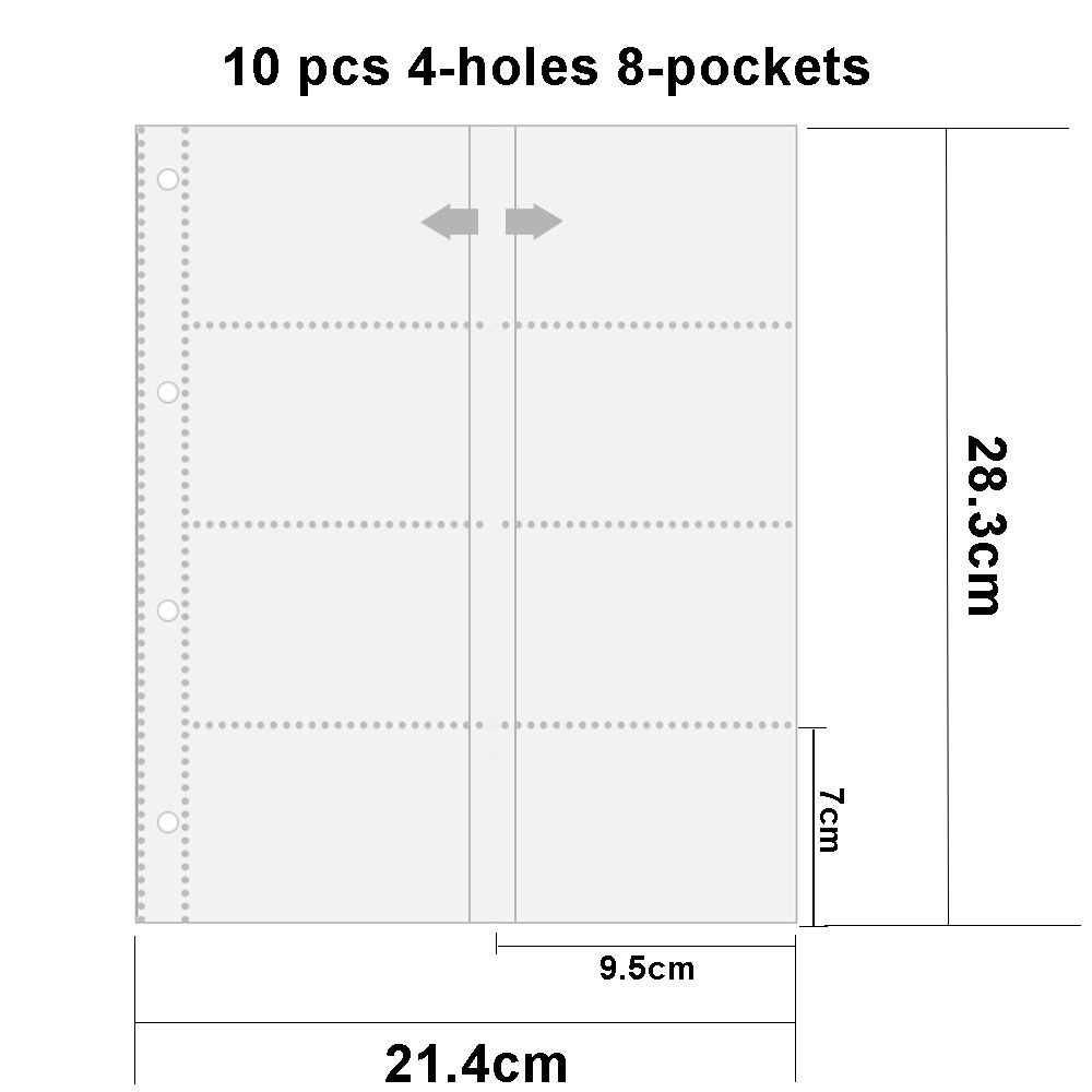 10 Pieces A4 Clear 6-pockets 8-pockets 9pocekts Binder Slevees Refill Photo Album loose leaf PP plastic Acid Free No PVC