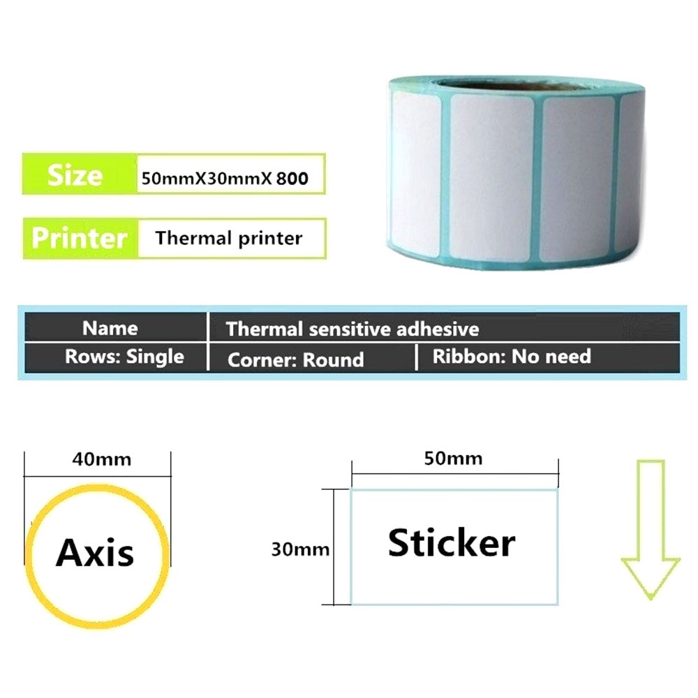 10 Rolls 50mm*30mm Thermal Label Adhesive Sticker Paper Thermal Sensitive Adhesive Sticker Barcode P