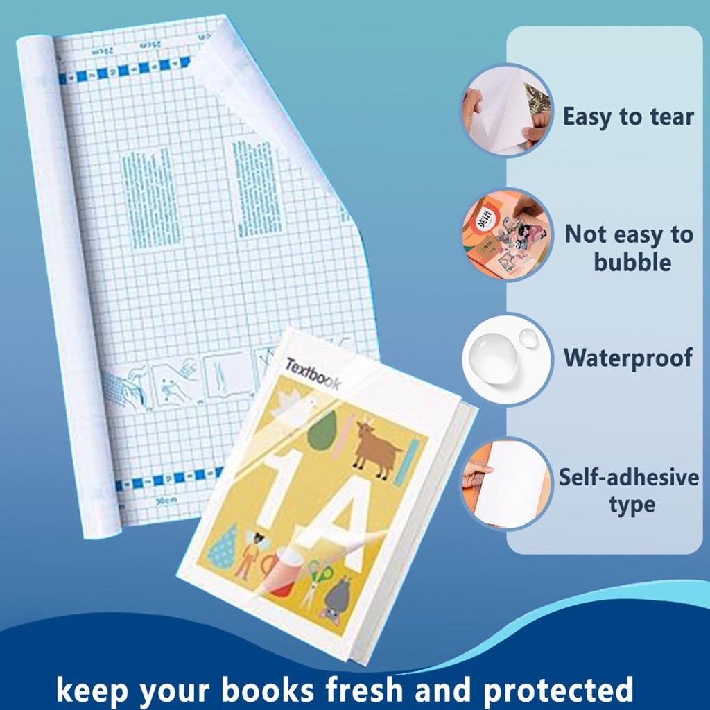 10 Sheets Waterproof Book Cover Transparent Plastic Cover Self-adhesive Book Wrap Student Book Case