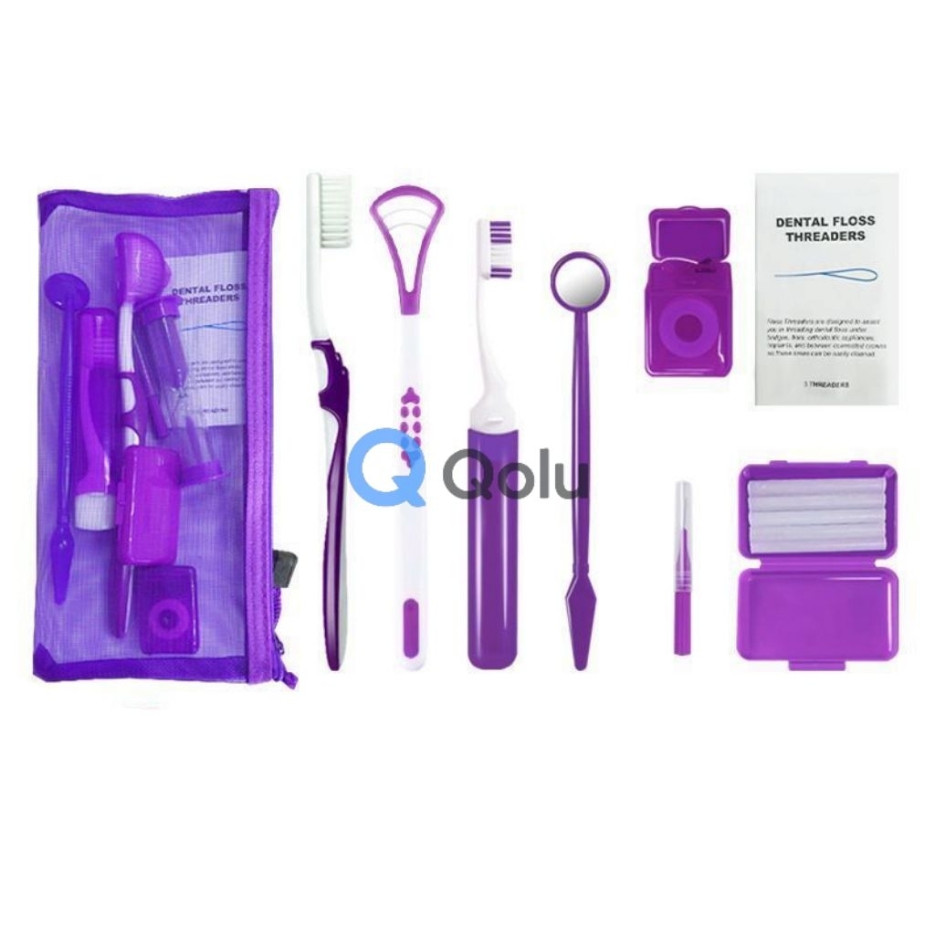 QOLU Ortho Kit 8pcs Braces Cleaning Kit for Teens | Travel Dental Set with Toothbrush, Wax & Floss