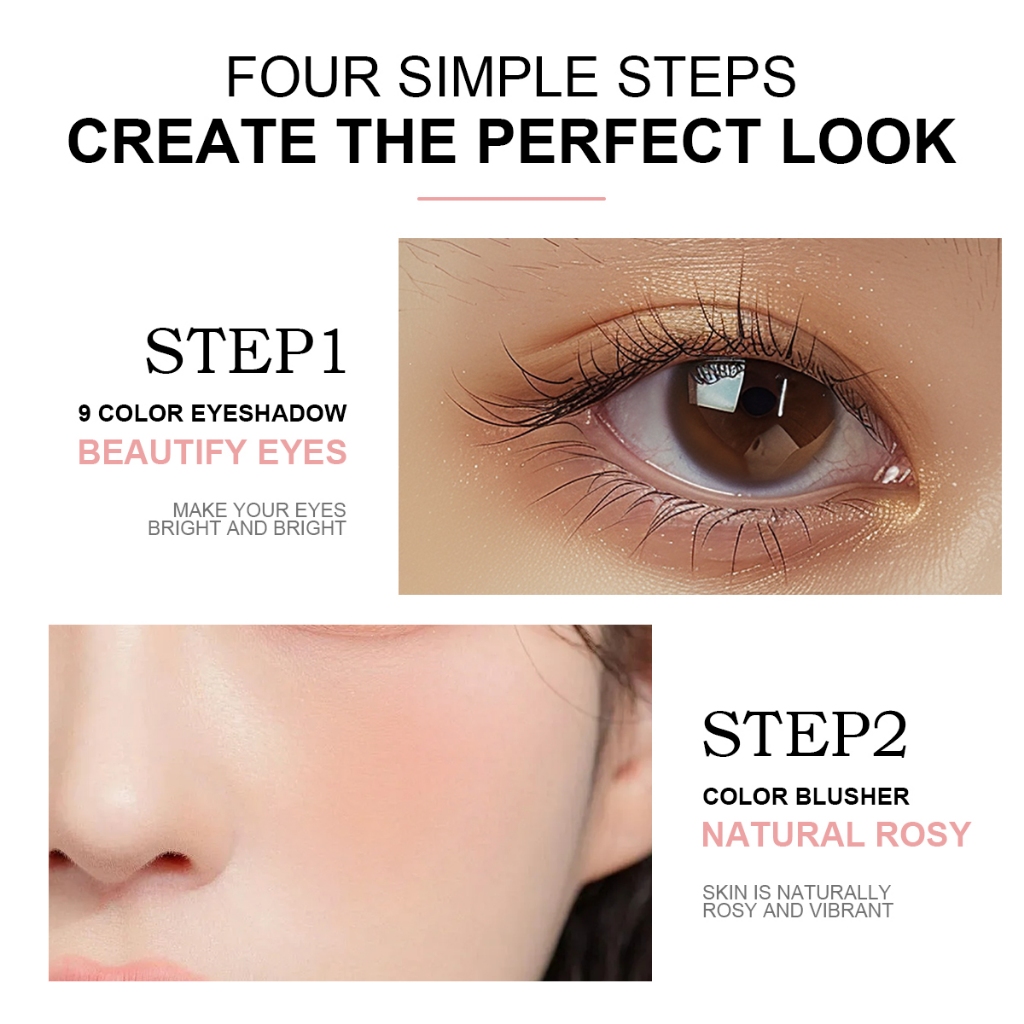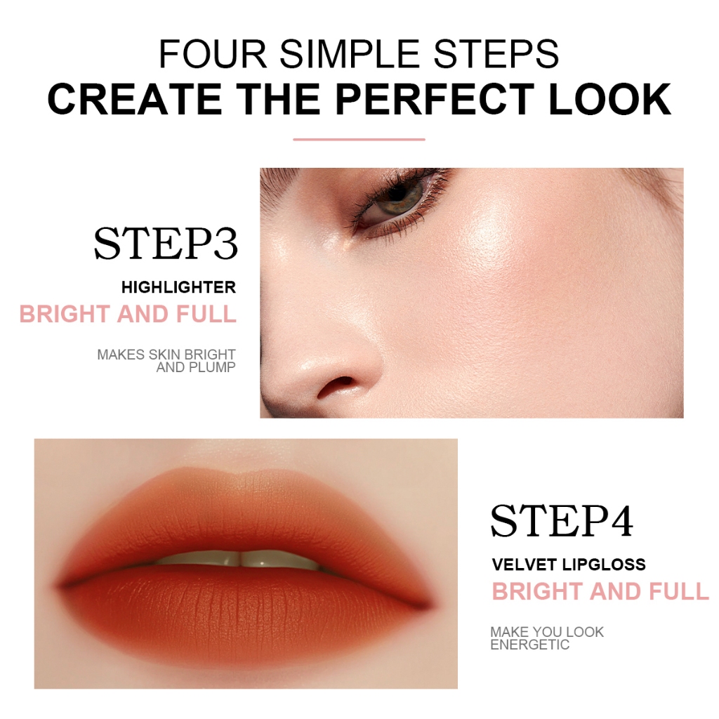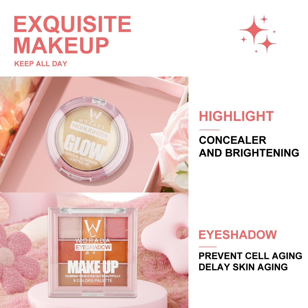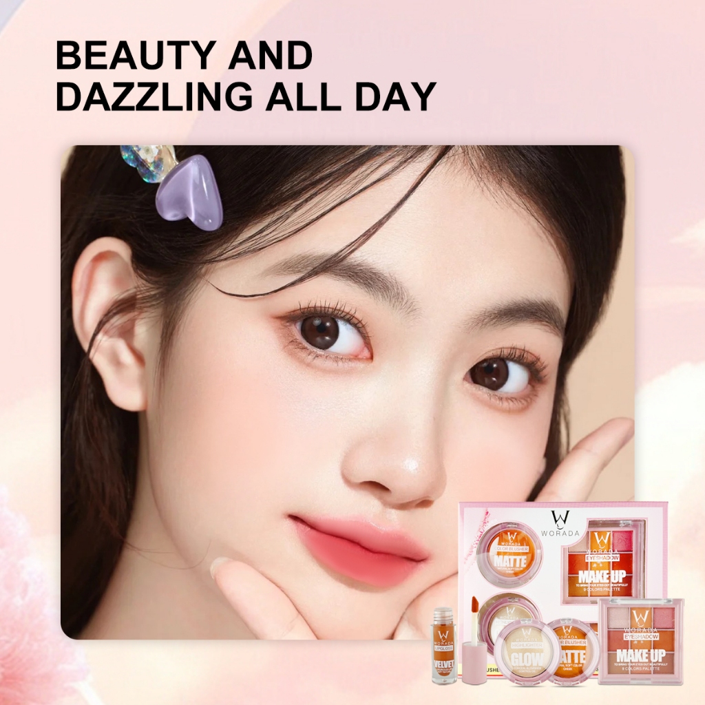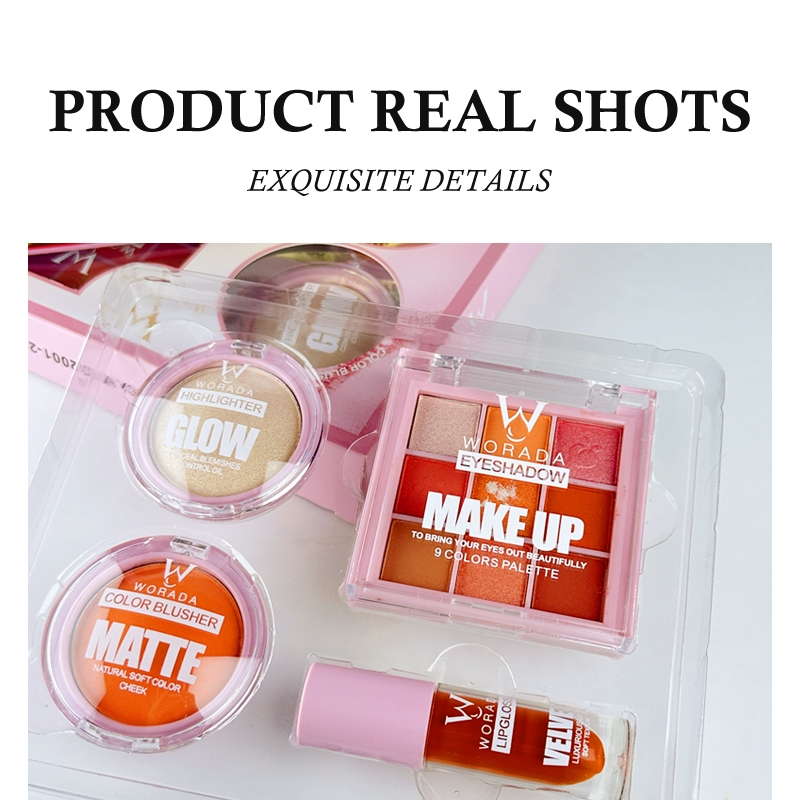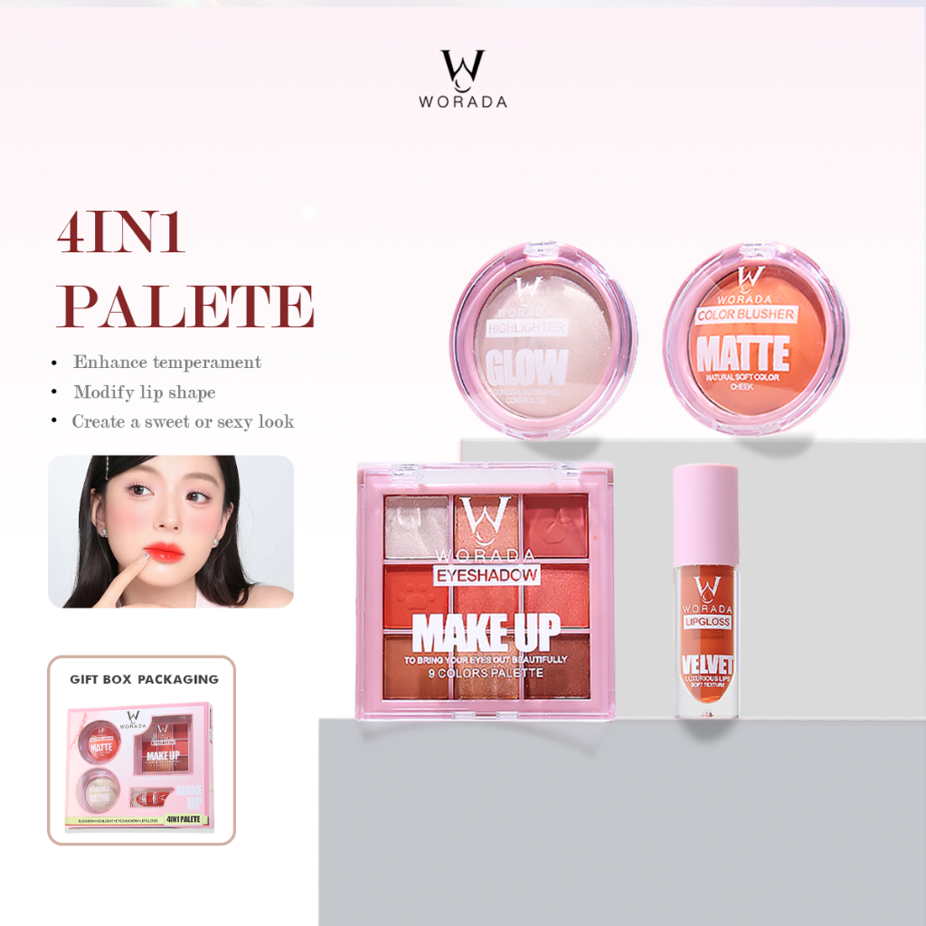WORADA 4-piece makeup set high-color eyeshadow, matte lipstick, soft blush, fine shimmer highlighter