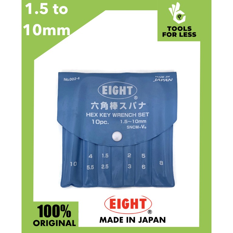 10 pc. Eight Hex Allen Key Wrench Set in Vinyl Pouch 1.5 to 10mm 002-4 Made in Japan