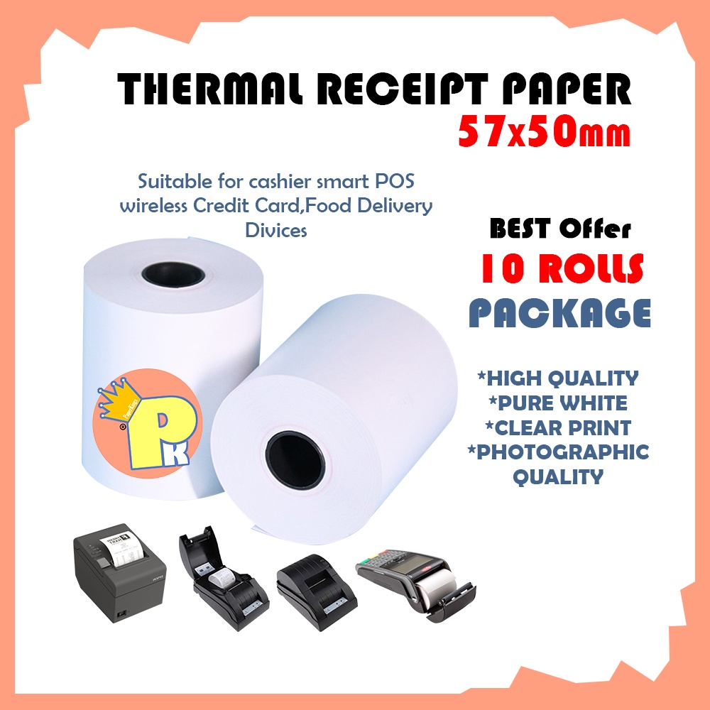 10 rolls 57x50mm Thermal paper POS Printer Receipt Paper roll