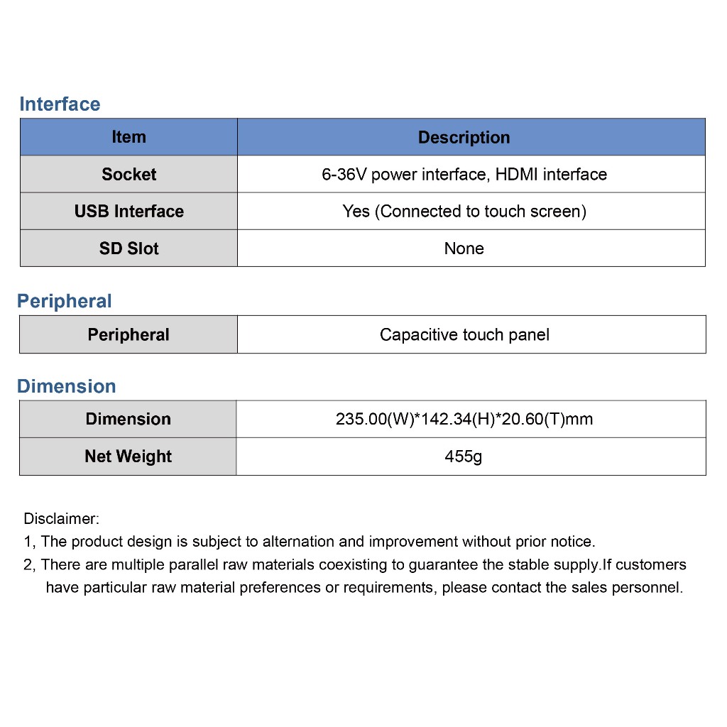 10.1-inch, 1024*600, 16.7M colors, IPS screen, Capacitive touch, HDMI interface display